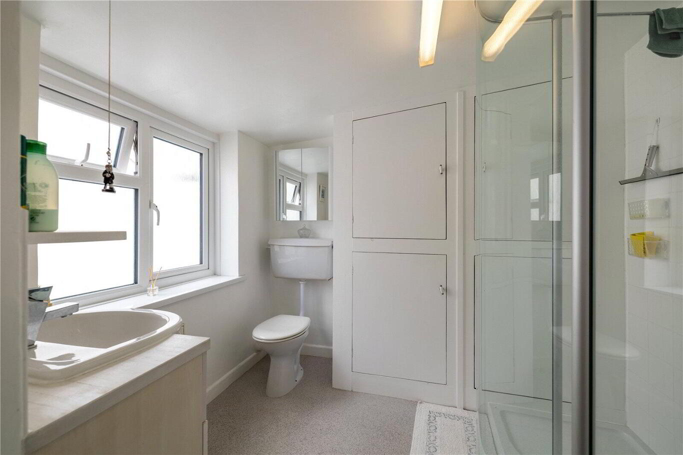 Upstairs, 2 generous double Bedrooms await, with the Main Bedroom benefitting from its own En-suite Shower Room. A staircase from Bedroom 2 leads to a Second Floor Room, offering the potential for an occasional third Bedroom or a peaceful Hobby Room. From here, picturesque views stretch across the rooftops to the shimmering blue waters beyond.