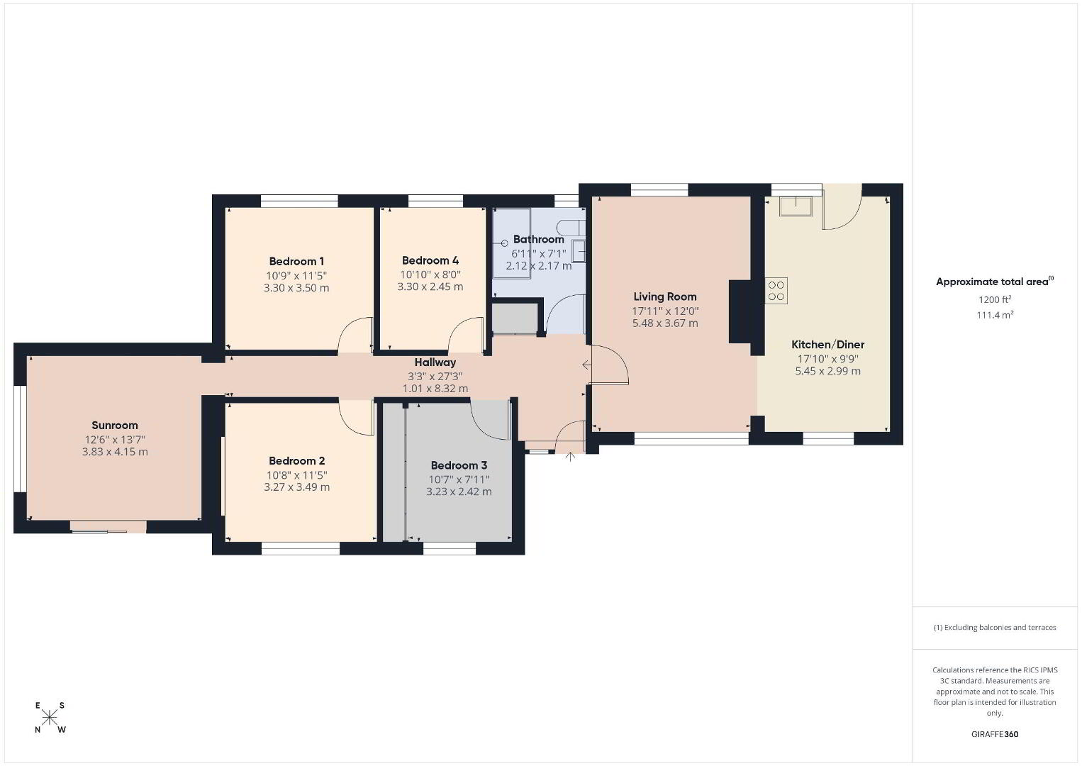 The well-proportioned internal layout continues with a centrally positioned family bathroom and four bedrooms, comprising three generous double bedrooms and a further single bedroom, offering flexibility for families, guests, or home working.