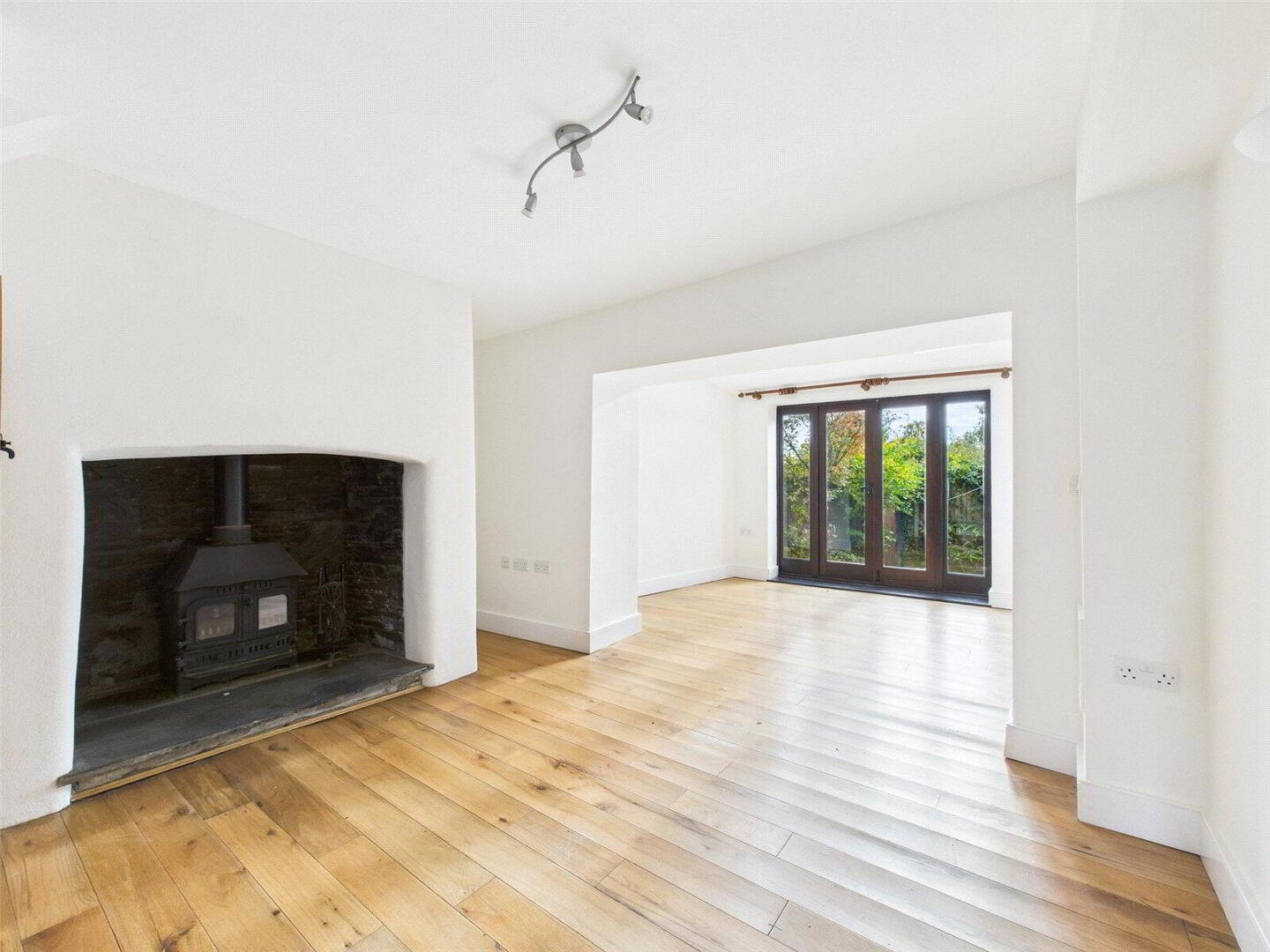 The spacious living area exudes charm, boasting an impressive inglenook fireplace with a wood-burning stove. A thoughtfully designed rear extension offers additional living space, filled with natural light and overlooking the charming enclosed courtyard.