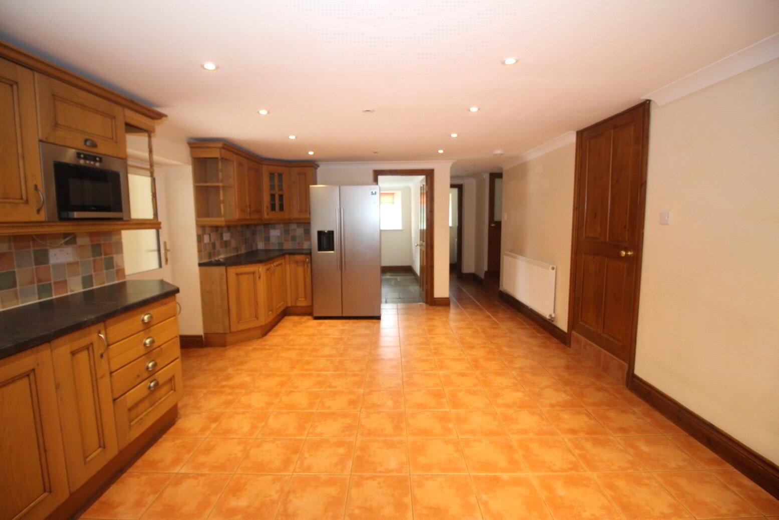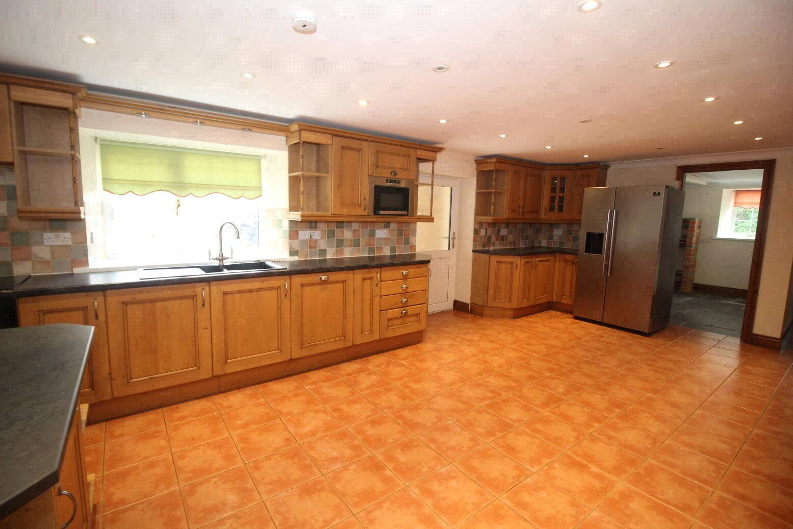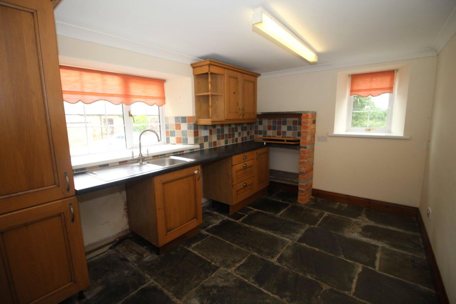 Slate floor, matching wall and base units. Stainless sink with drainer. Tiled splashback. Space and plumbing for washer and dryer. Smoke alarm. Fuse box. - Reception Room 1