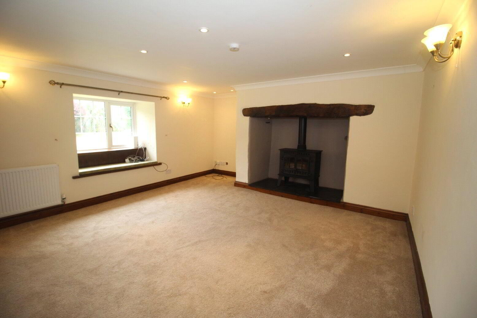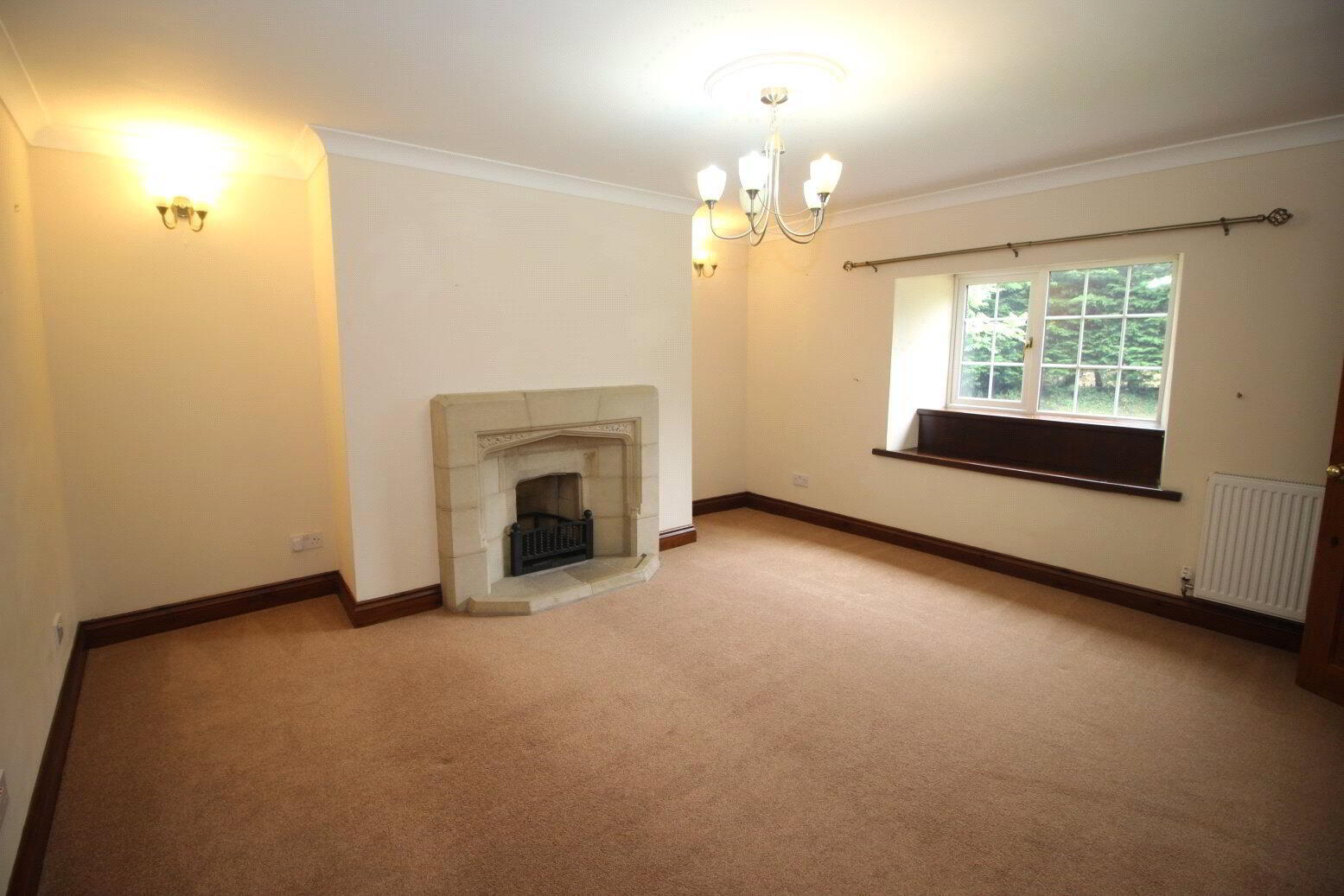 Carpet, marble fireplace with open fire. Radiator. Window seat feature. - WC