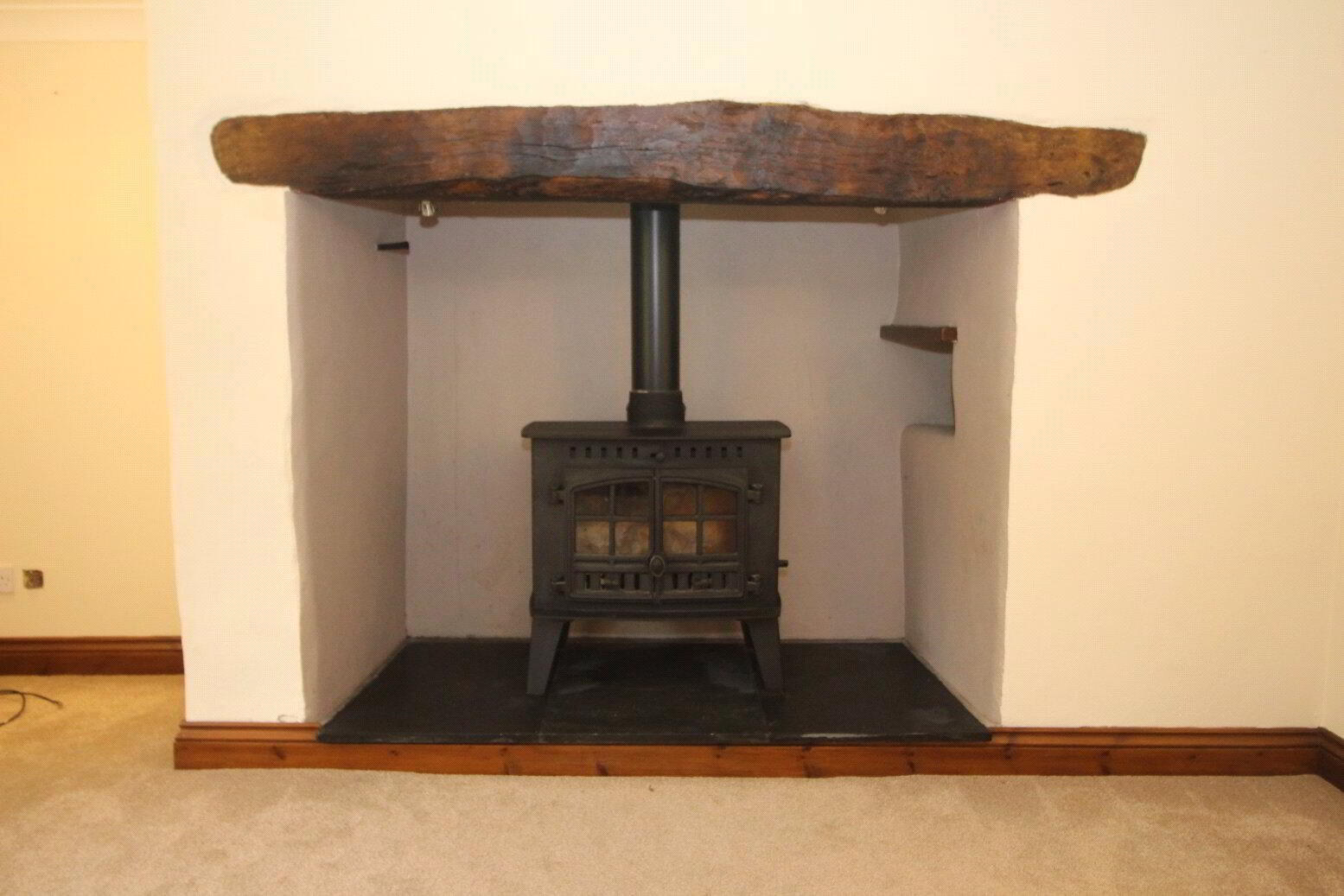 Carpet, wood burner with feature fireplace and slate Hearth. TV and telephone point. Radiator. Window seat feature. Storage cupboard housing heating system. - Reception Room 2