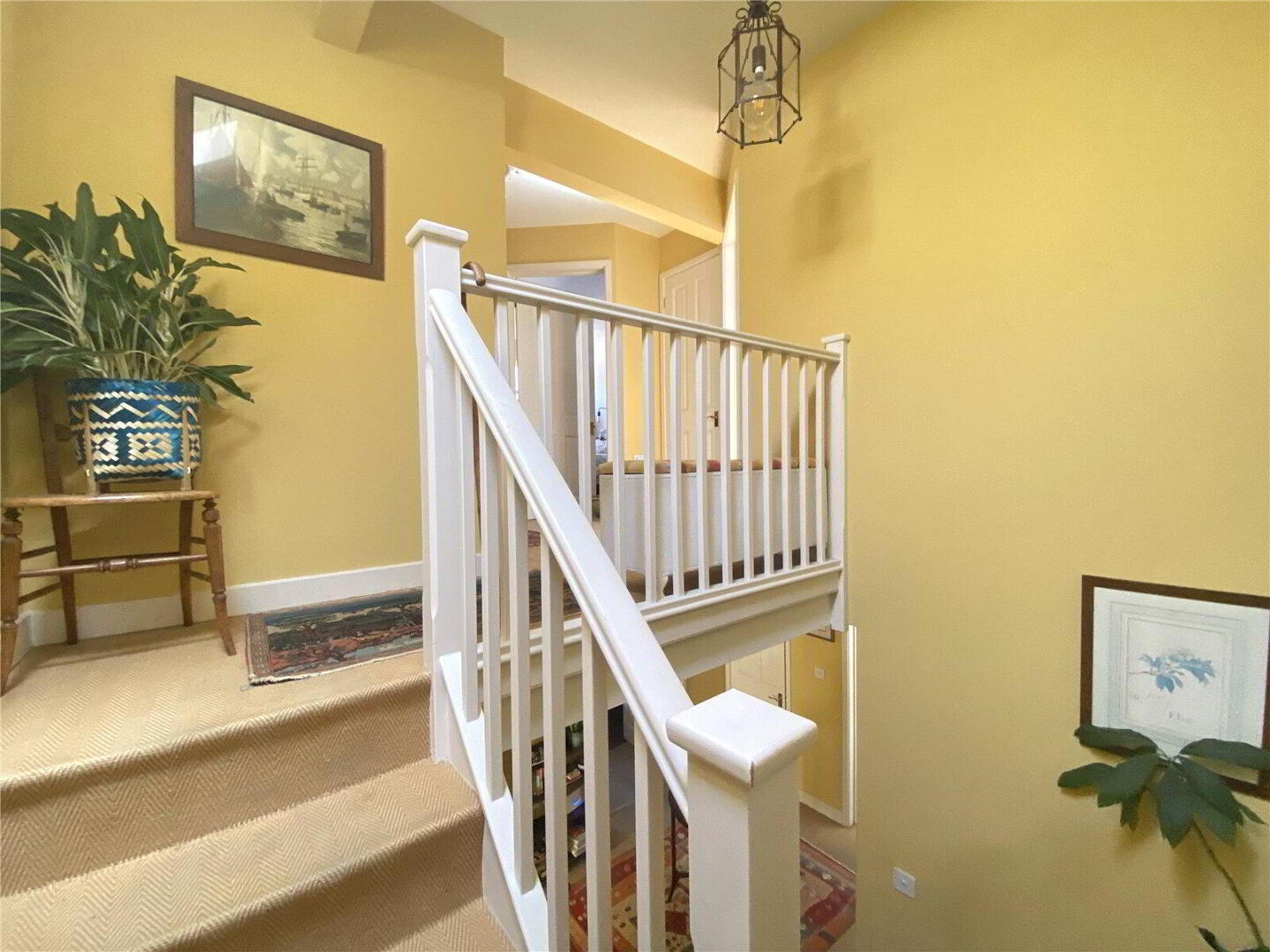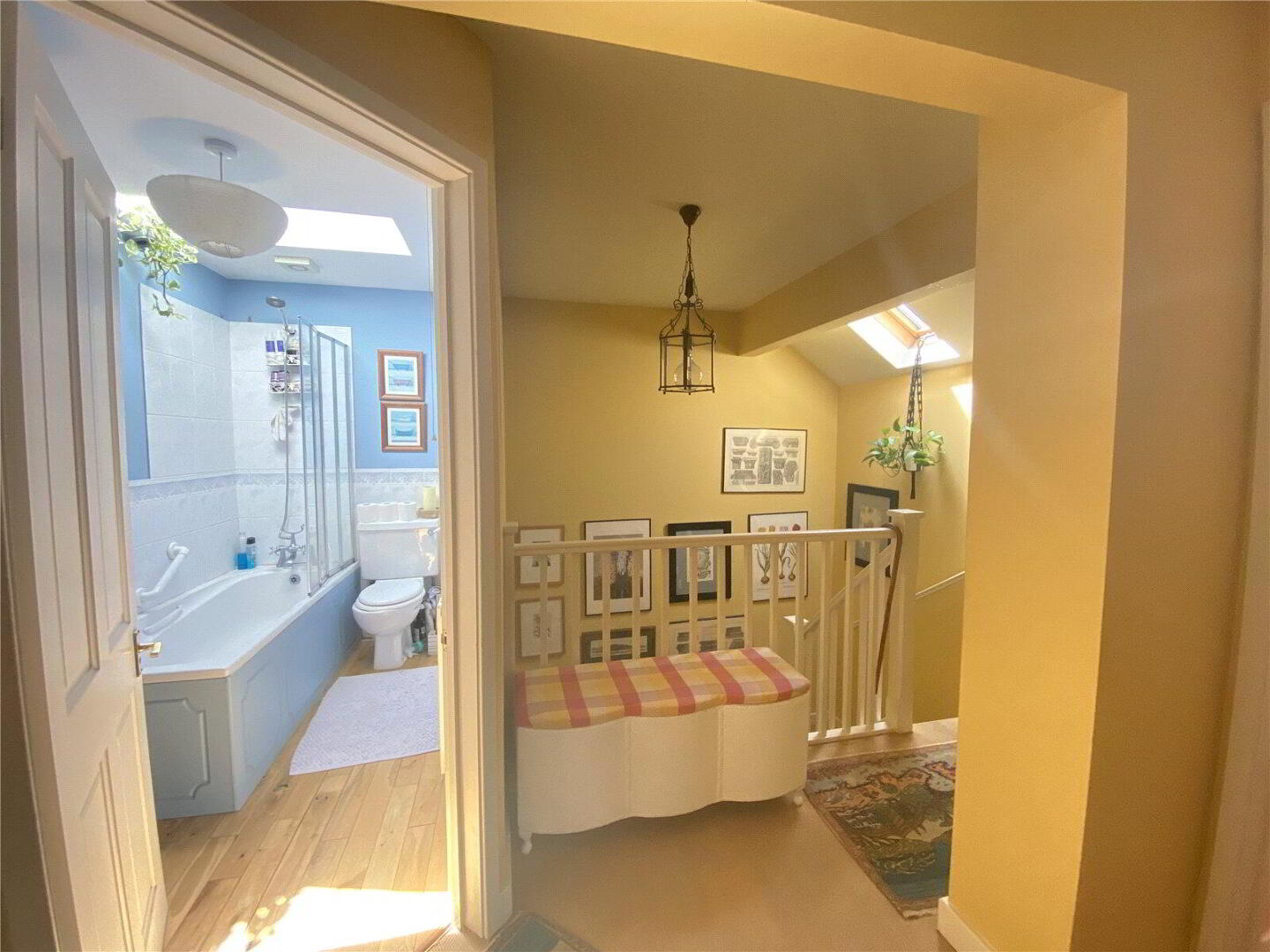 On the first floor, off a airy landing, there are three bedrooms and a family bathroom.