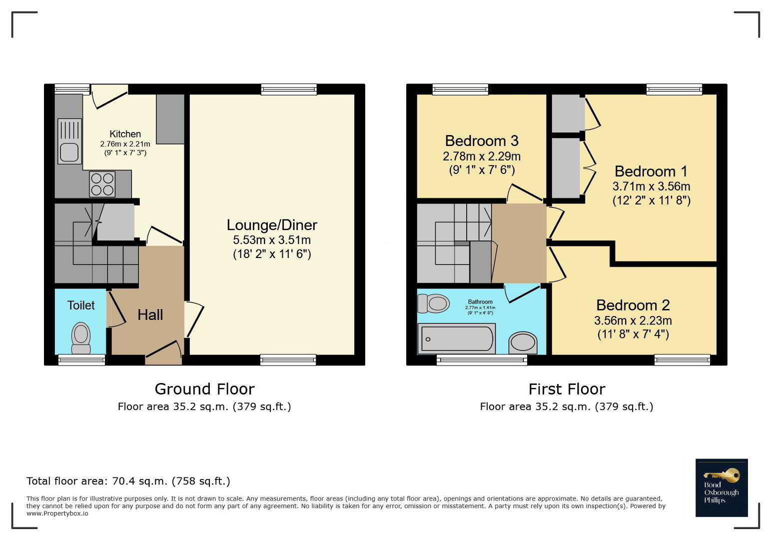 Upstairs, you'll find three well-proportioned Bedrooms, each with space for free-standing furniture. A modern Bathroom completes the layout, featuring a bath with shower over.