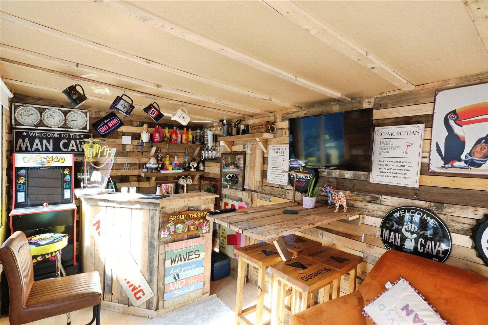 Outside, the enclosed rear garden offers a lovely space to relax or entertain, featuring a handy outbuilding currently used as a mini bar and snug. To the front, there’s off-road driveway parking and dry space for wood storage.