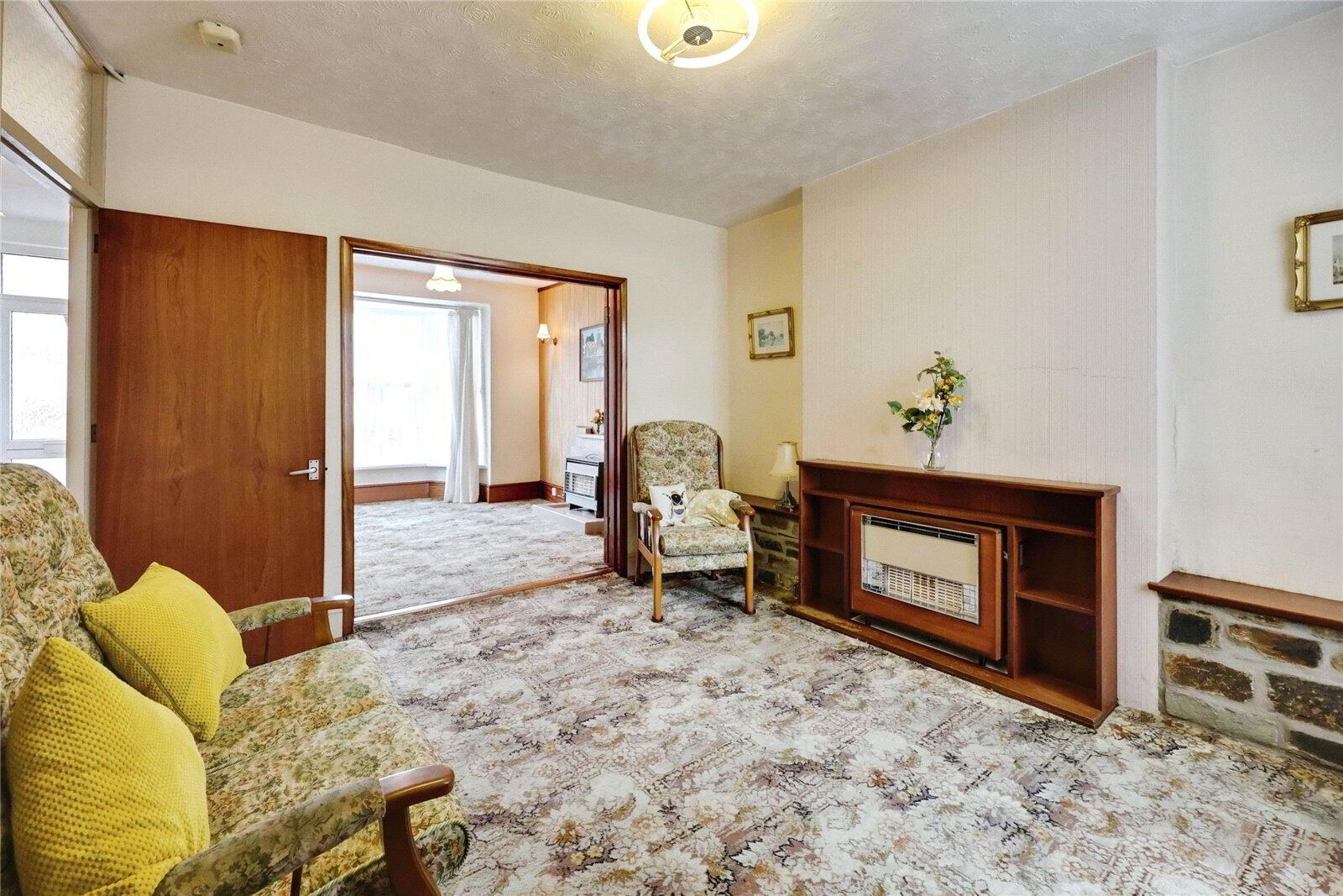 An Entrance Hall welcomes you into the home with doors to both the Living Room and Dining Room and stairs rising to the first floor. The Living Room features a flame effect gas fire, a UPVC double glazed bay window and French doors to the Dining Room. The Dining Room also has a gas fire and provides access into the Kitchen. The Kitchen is fitted with an array of matching cupboards and drawers, as well as a stainless steel sink set within a traditional drainer unit. There is a gas cooker point, space for a small breakfast bar and doors to both the rear garden and an Inner Hallway.