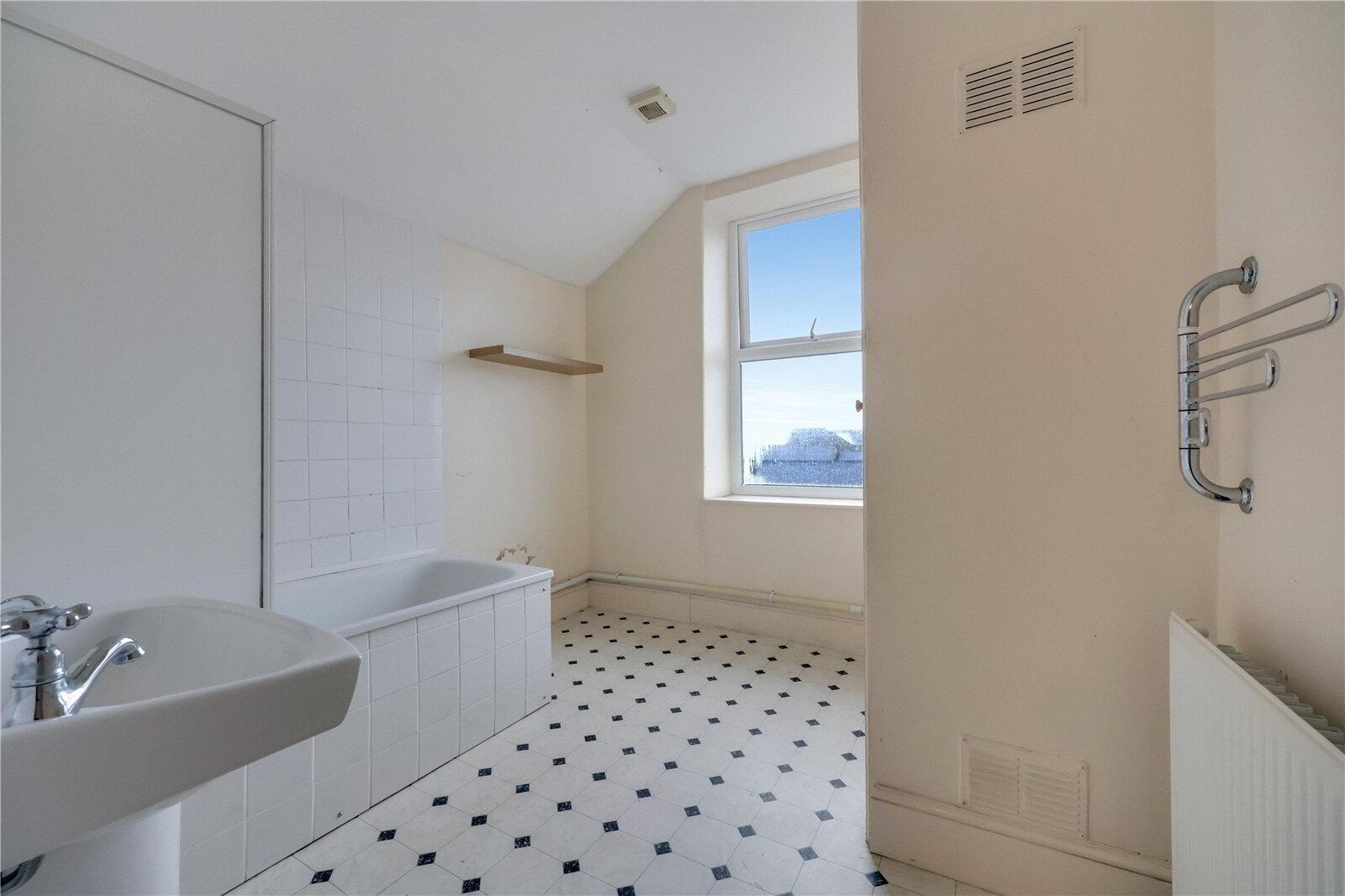 Having a share of the Freehold and offered for sale with no onward chain, the property welcomes you into a bright and airy Entrance Hall which leads to a Bathroom featuring a bath with overhead shower and a pedestal wash hand basin. There is also a separate WC for added convenience.