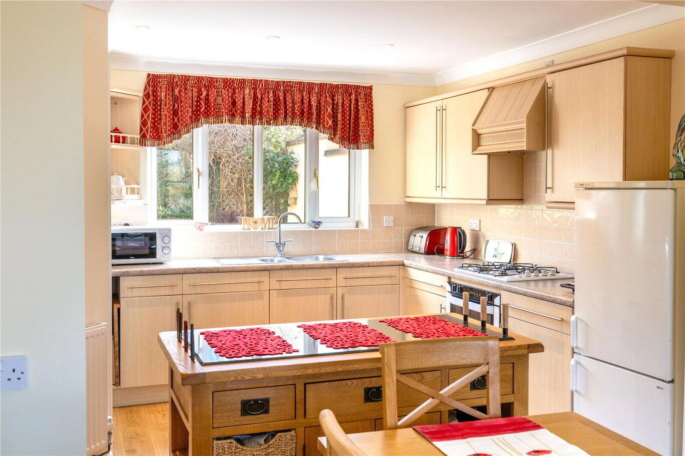 Entrance to the home is via an attractive Porch framed by faux pillars, leading into a spacious and welcoming Entrance Hall. To the left, you'll discover a generously sized Living Room bathed in natural light from the front window and French doors opening onto the rear garden, with a feature fireplace providing a charming focal point. To the right of the Entrance Hall, the spacious Kitchen / Diner forms a wonderful heart to the home. This room cleverly divides into two distinct areas: a dedicated dining space ideal for family gatherings, and a well-equipped kitchen offering a range of cupboards, drawers, ample work surfaces, an integrated oven and hob, plus space for a fridge / freezer. Conveniently adjacent, a separate Utility Room provides additional space for domestic appliances.