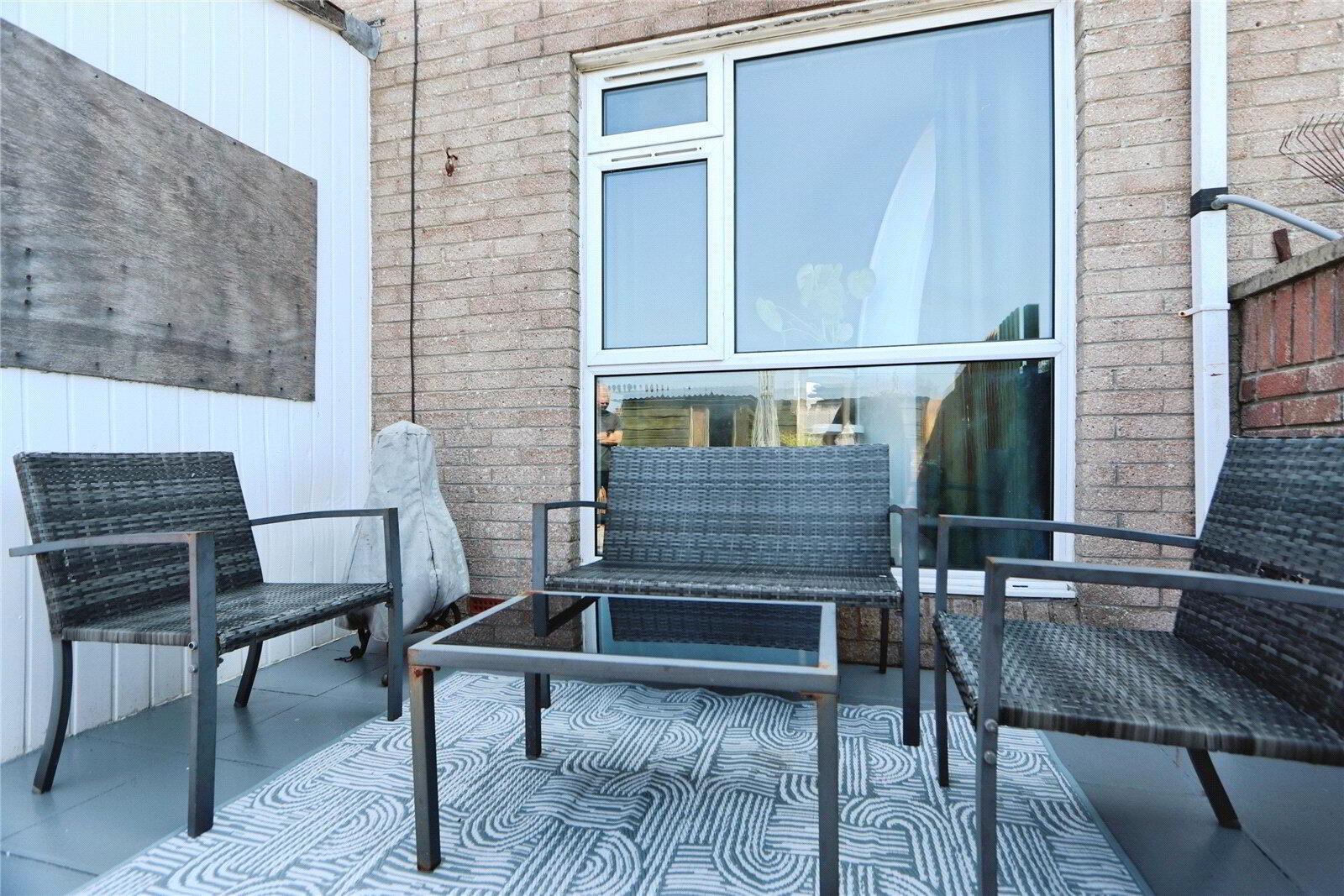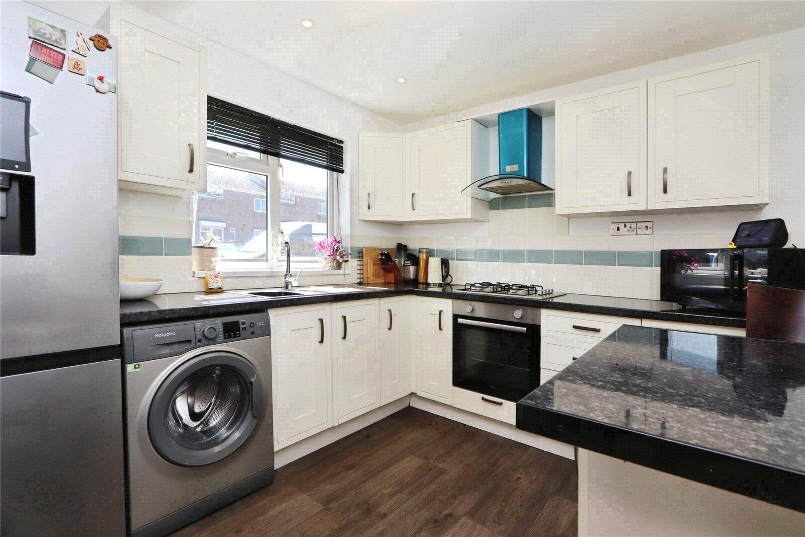 Set behind a fully enclosed lawned front garden, the house welcomes you via an Entrance Hall with access to a handy ground floor Cloakroom. The recently redecorated Kitchen features a range of fitted units, a sociable hatch to the Living Room, and an included breakfast bar. The Living Room is bright and inviting with wood effect flooring and a large window overlooking the sunny rear garden. A useful Utility leads to a covered Rear Porch and a fully enclosed garden with ample seating space, a large shed and pedestrian rear access.