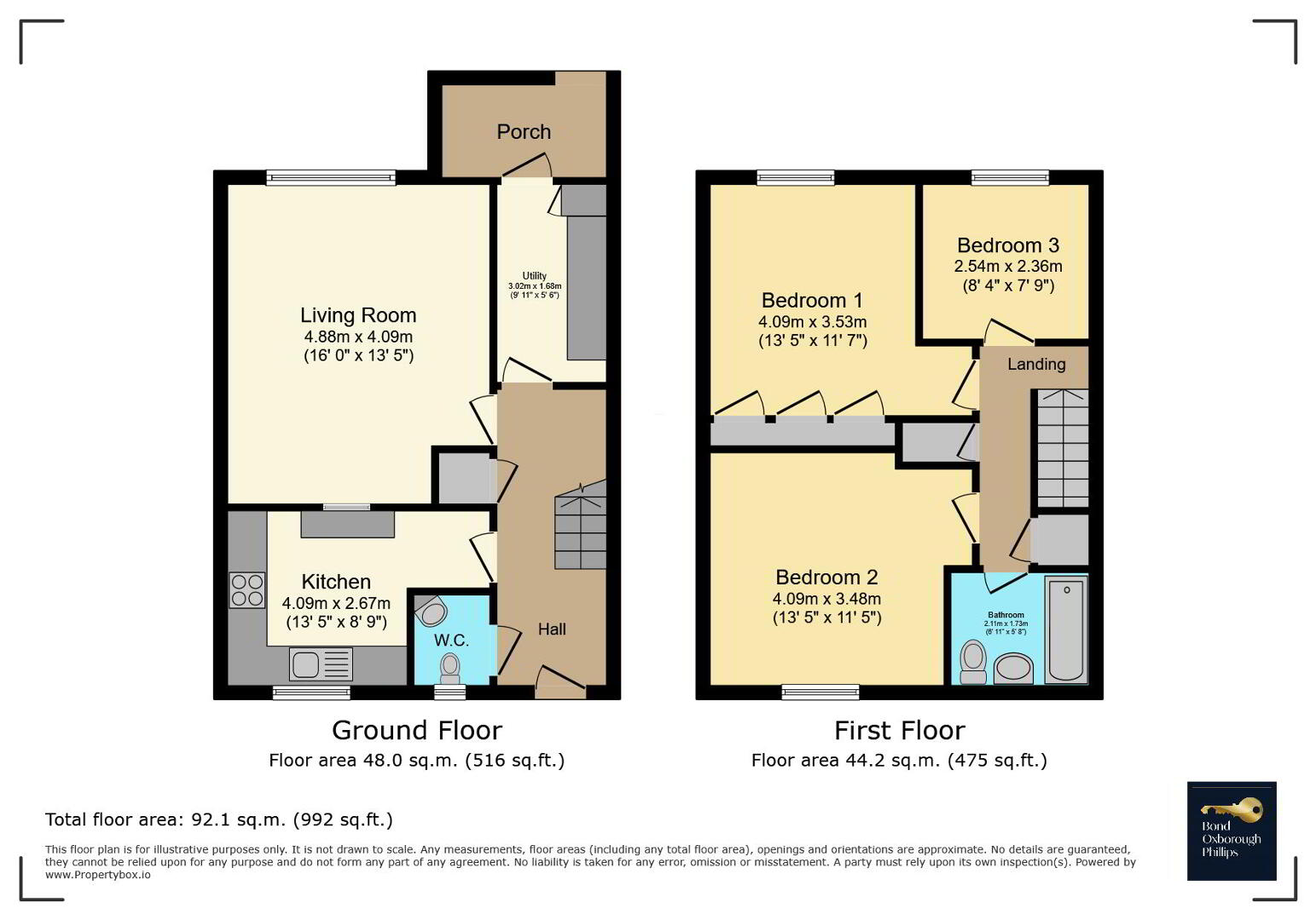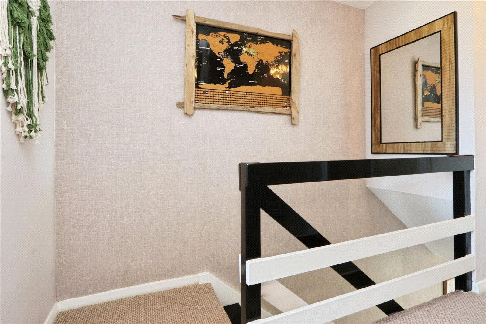 Upstairs, the Landing provides access to a sizeable storage cupboard and the loft hatch, as well as a cupboard housing the gas boiler. The Main Bedroom benefits from countryside views and built-in wardrobes, while the second and third Bedrooms are also well-proportioned, with the third offering a flexible space for a child’s room or office.
