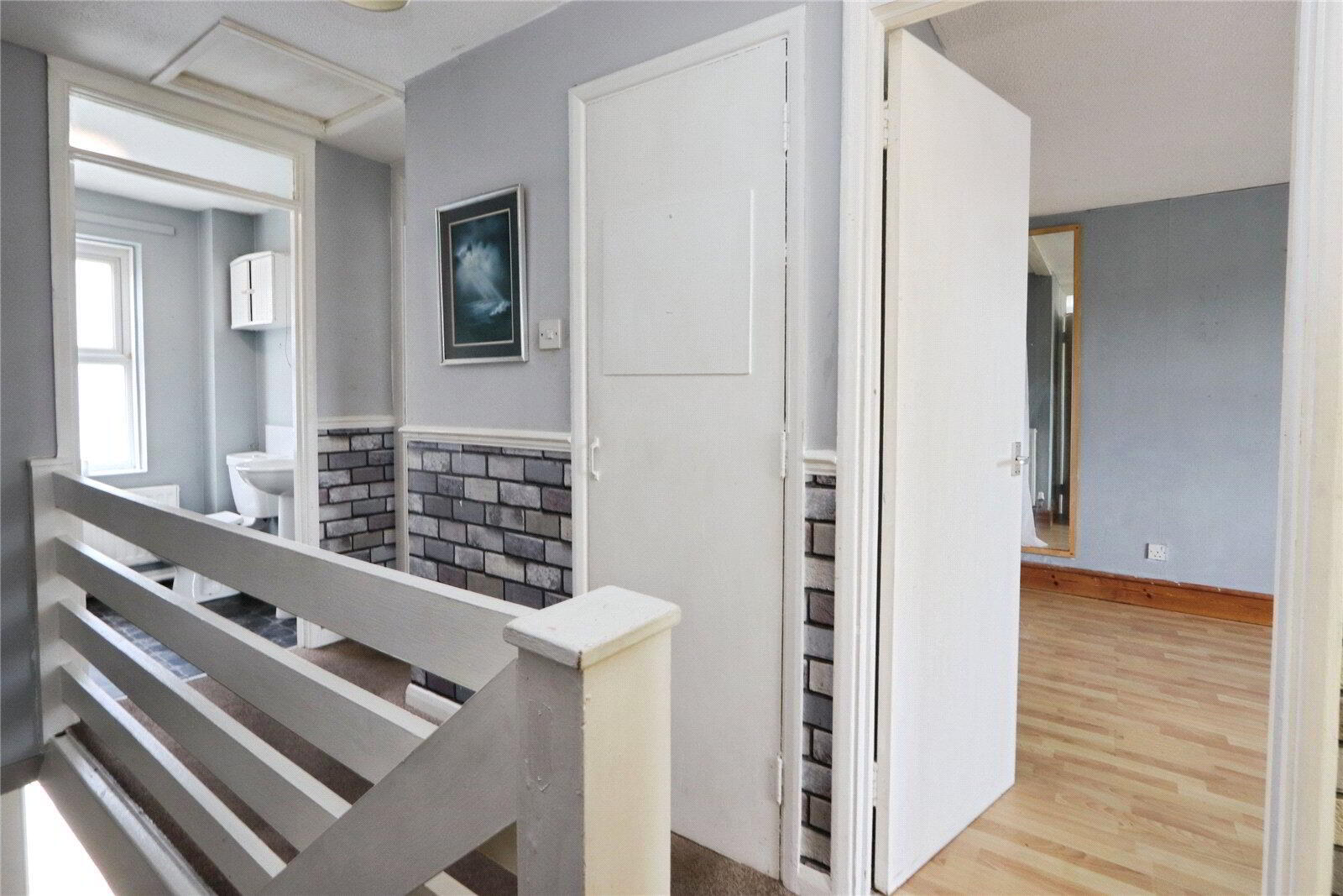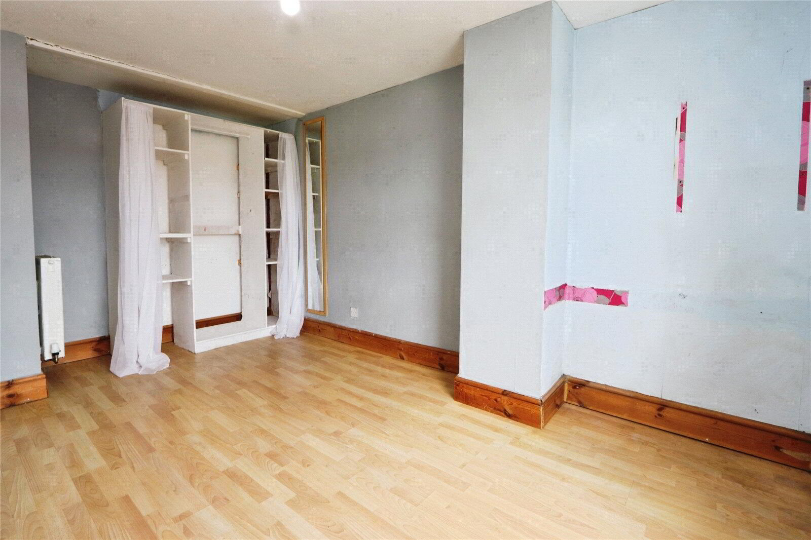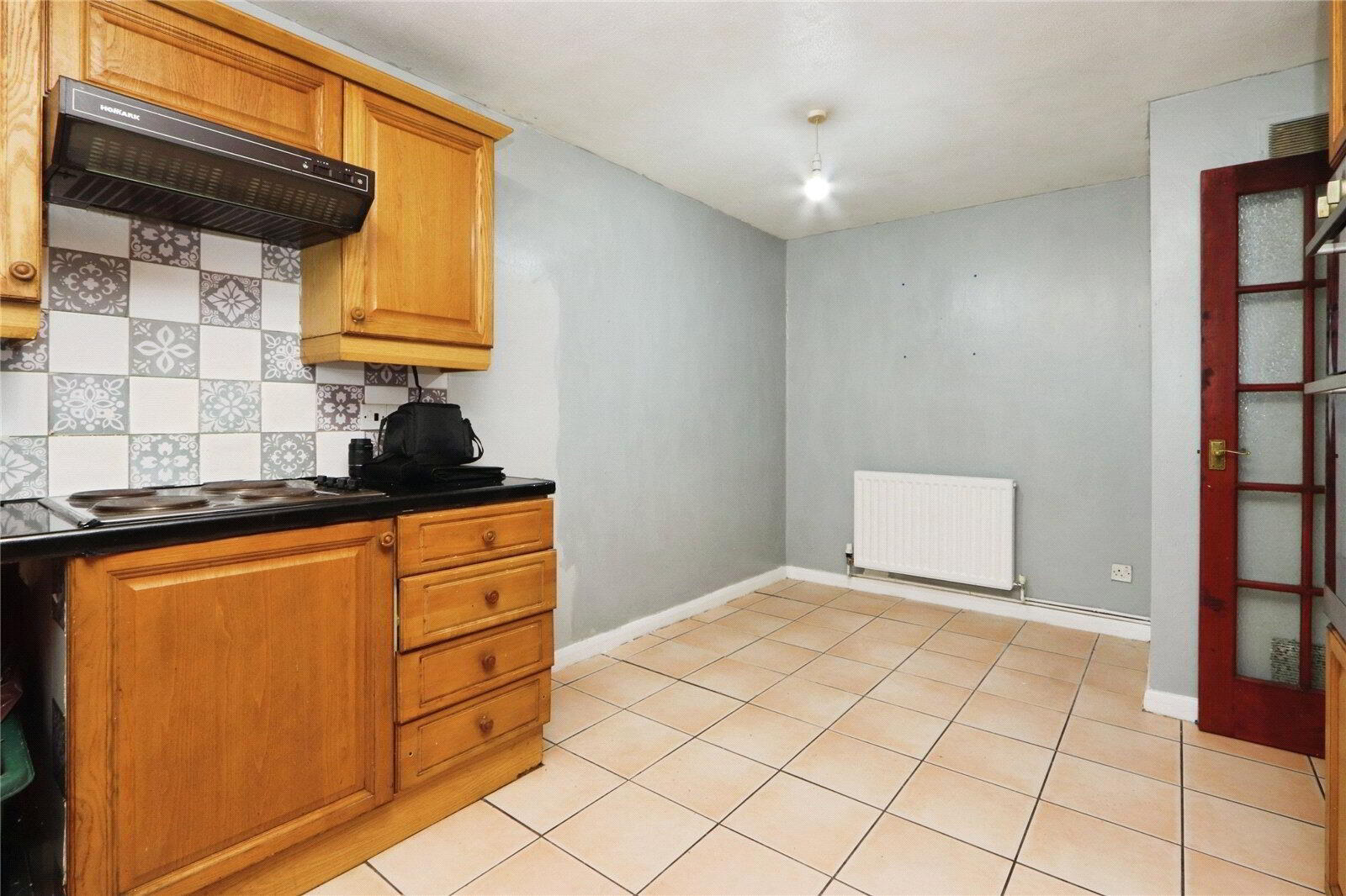 The property is accessed directly from the street into a central Hallway with stairs rising to the first floor. To the front is a spacious Kitchen / Dining Room with ample room for a table and fitted units in need of updating, providing a large and practical space that could be transformed into the hub of the home. To the rear is a sizeable Living Room that spans the full width of the house, centred around a fireplace and offering a bright and comfortable reception area. From here, a door leads to a rear porch and out to the garden.