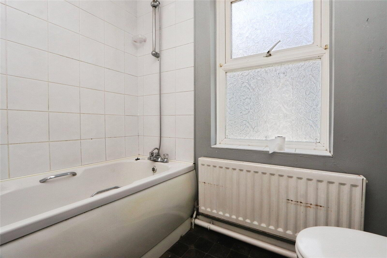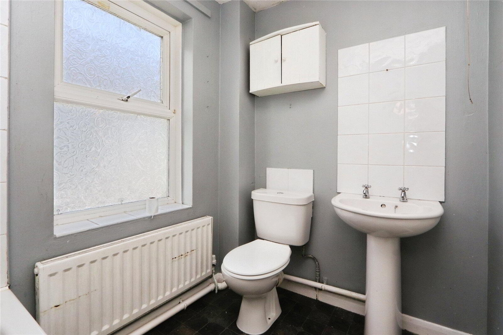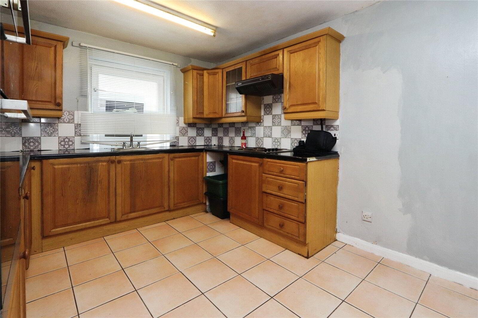 The property is accessed directly from the street into a central Hallway with stairs rising to the first floor. To the front is a spacious Kitchen / Dining Room with ample room for a table and fitted units in need of updating, providing a large and practical space that could be transformed into the hub of the home. To the rear is a sizeable Living Room that spans the full width of the house, centred around a fireplace and offering a bright and comfortable reception area. From here, a door leads to a rear porch and out to the garden.
