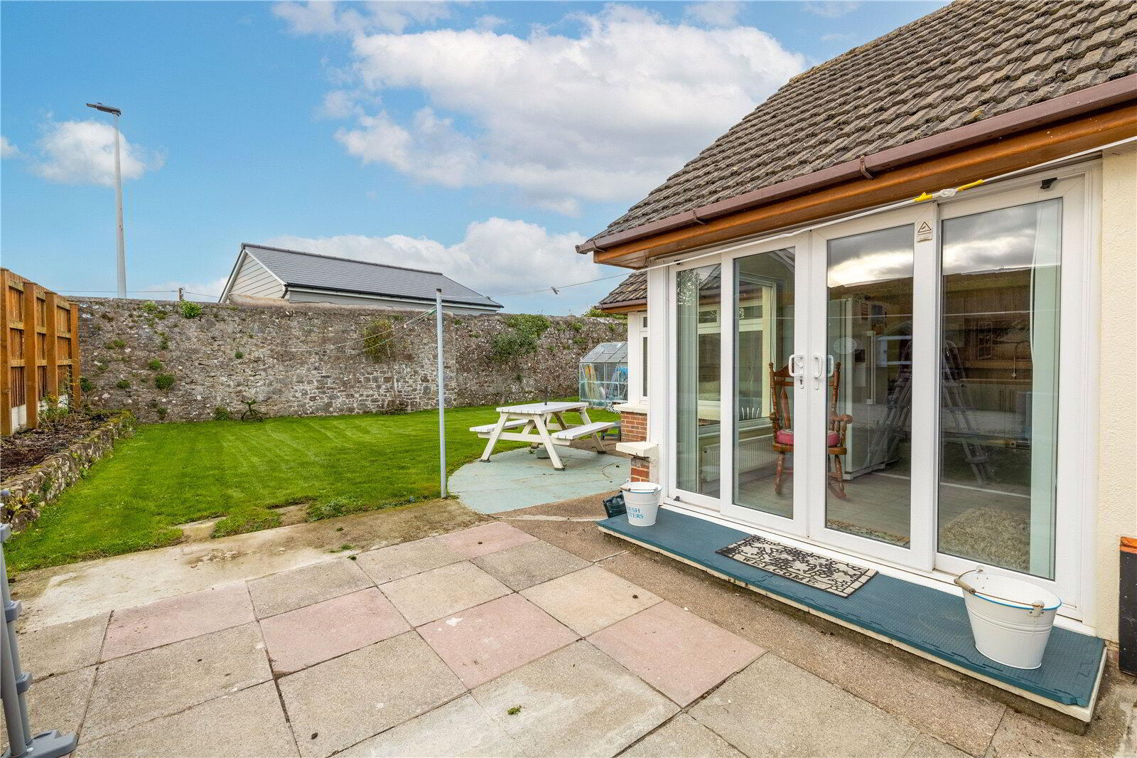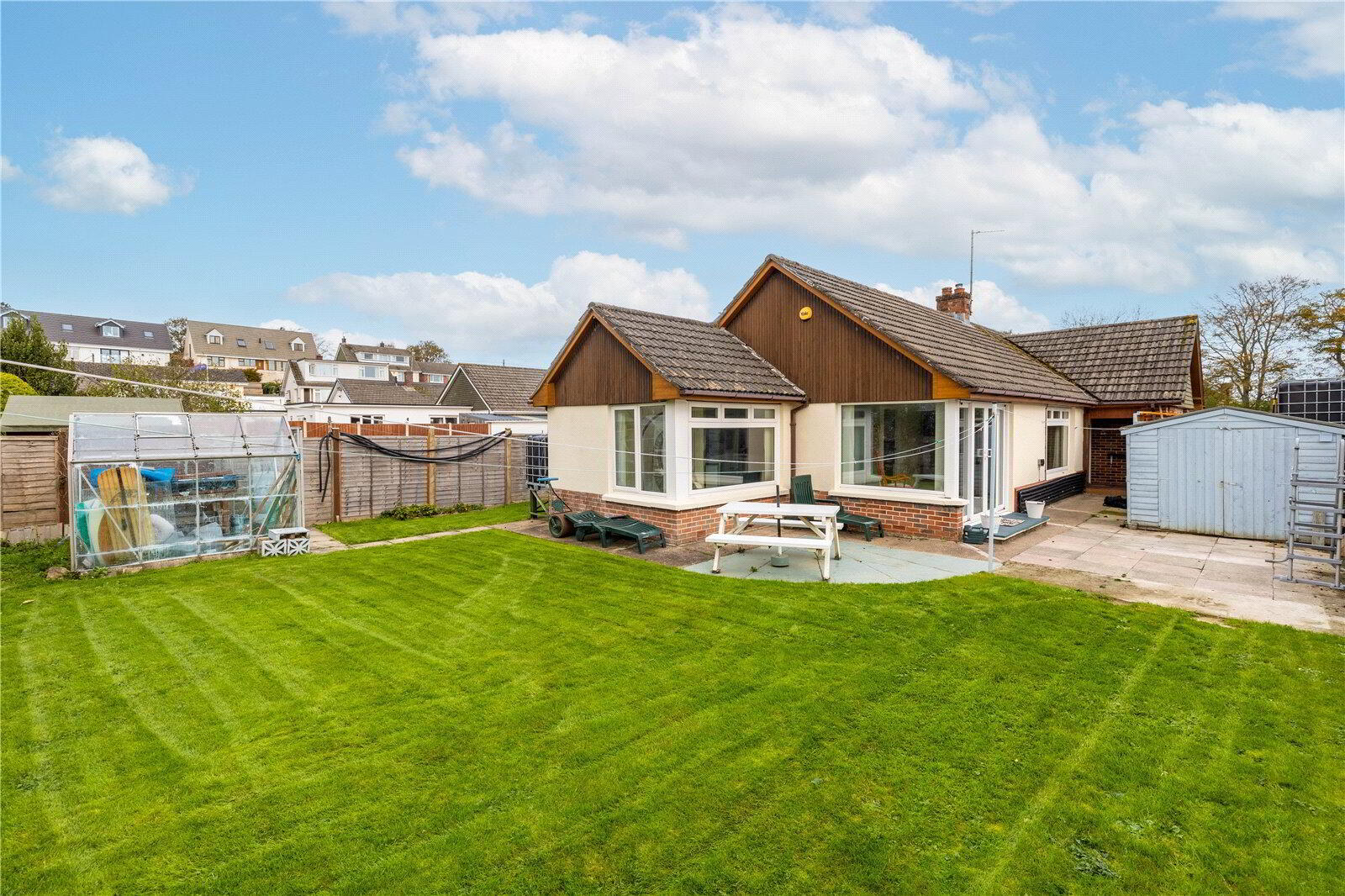 - The bungalow occupies an impressive corner plot. There is plentiful driveway parking to the front of the bungalow which leads to the Garage. A side garden leads around to the front door and through to the rear garden via the Entrance Porch. The garden is a wonderful, fully enclosed space and primarily features a lovely, level lawn which is perfect for gardeners or children or, perhaps, grandchildren. Those with green fingers will be pleased to know that a Greenhouse is included in the sale. There is also a lovely patio area - perfect for relaxing and for dining.