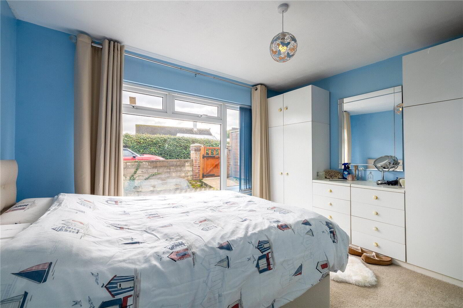 - Large UPVC double glazed window with fitted blinds. 2 double wardrobes with central drawer units. Radiator, fitted carpet.
