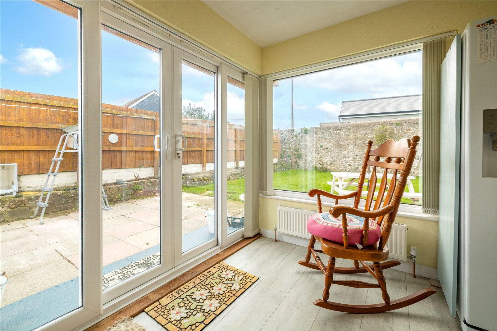 - A fabulous little area where you can enjoy the garden whatever the weather. Dual aspect UPVC double glazed windows with fitted vertical blinds. Wood effect laminate flooring. Sliding door to Utility / Shower Room.