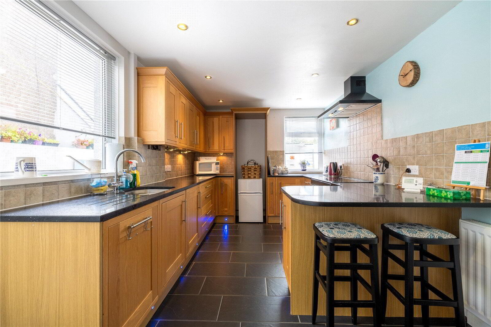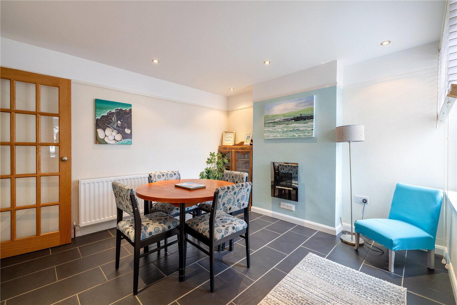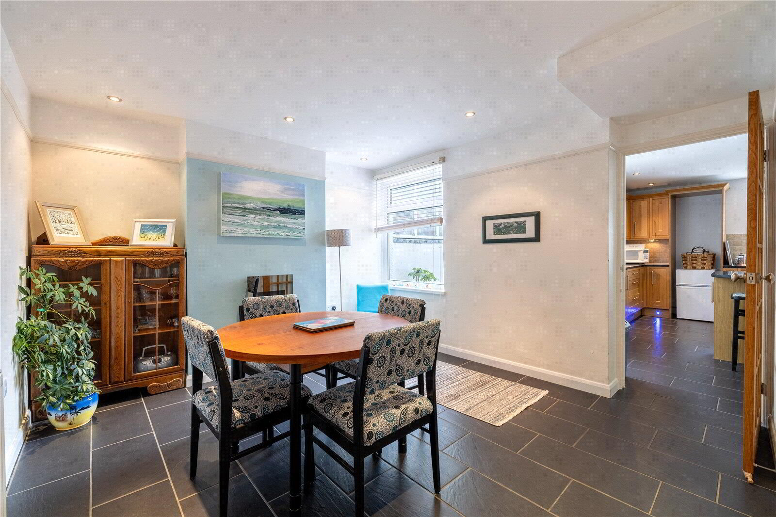 The home itself has been beautifully maintained and is presented to a high standard throughout. At the front, the property immediately stands out with the rare advantage of a sizeable off-road parking bay, a real benefit in this sought after area. Stepping inside, a welcoming Hallway sets the tone, with attractive slate flooring that continues through the Kitchen and Dining Room. The spacious Living Room enjoys a large bay window which fills the space with natural light and creates a warm, inviting atmosphere, complemented by a modern wall mounted fireplace. The separate Dining Room provides an excellent space for entertaining, again with a feature fireplace, while the contemporary Kitchen is well-equipped with a stylish range of units, quality work surfaces, a breakfast bar, integrated dishwasher and Rangemaster cooker, along with the bonus of a large understairs storage cupboard.