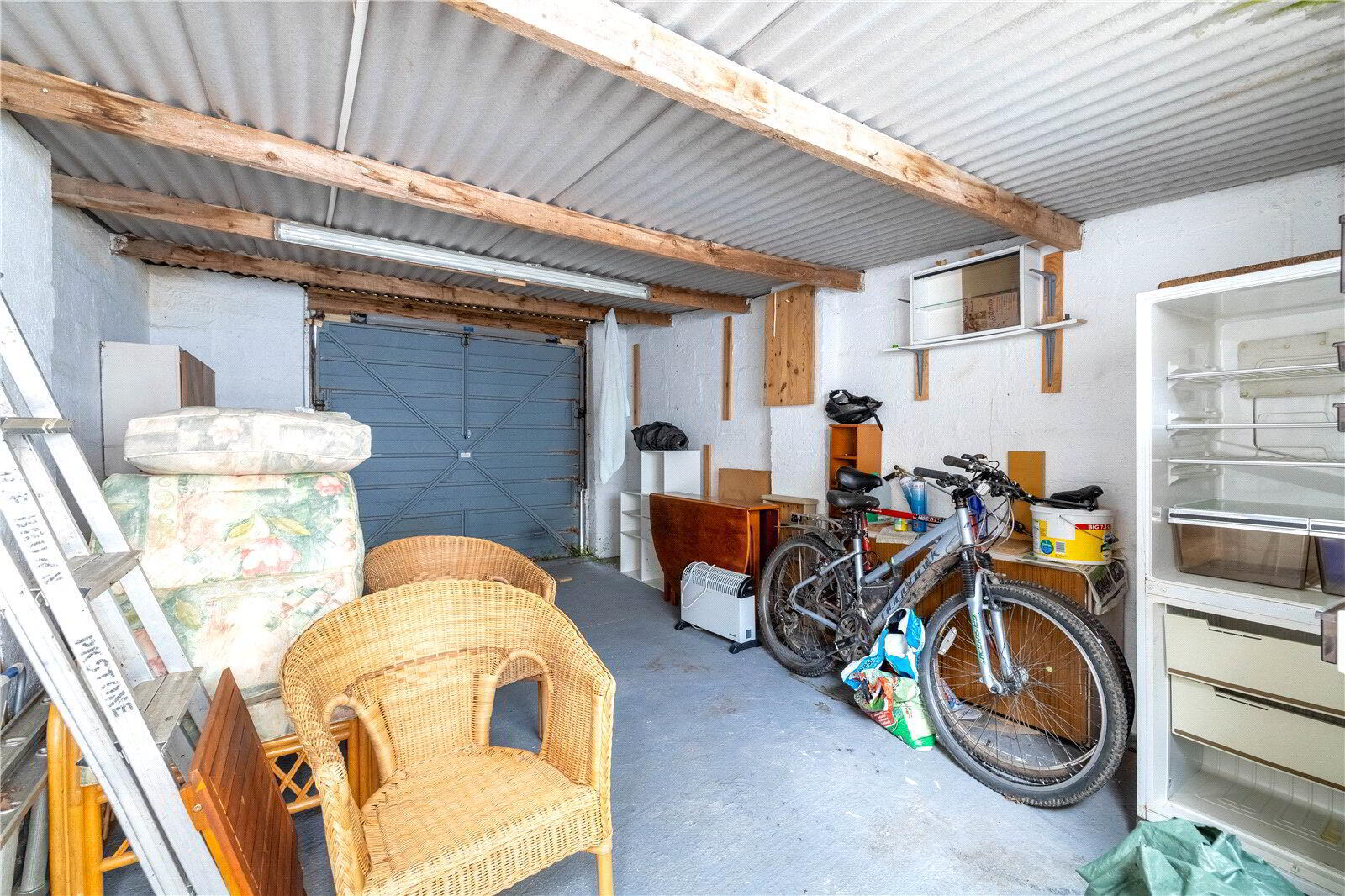 Outside, a sunny courtyard garden provides a peaceful and low-maintenance retreat - perfect for al fresco dining or a morning coffee. From here there is direct access into a sizeable Garage, ideal for secure parking, storage or a workshop, while a rear gate opens onto a quiet no-through road where further parking can be found.