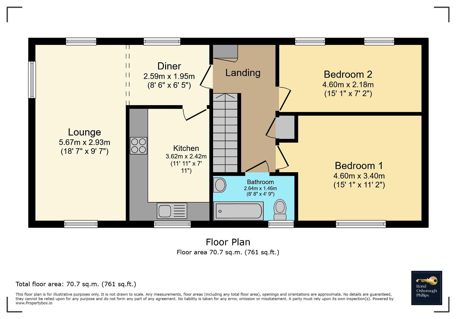 There are 2 well-proportioned Bedrooms, both with pleasant outlooks and neutral décor, ideal for ease of furnishing. The Bathroom is fitted with a white suite including a full-size bath with shower over and is finished in clean, modern tiling.