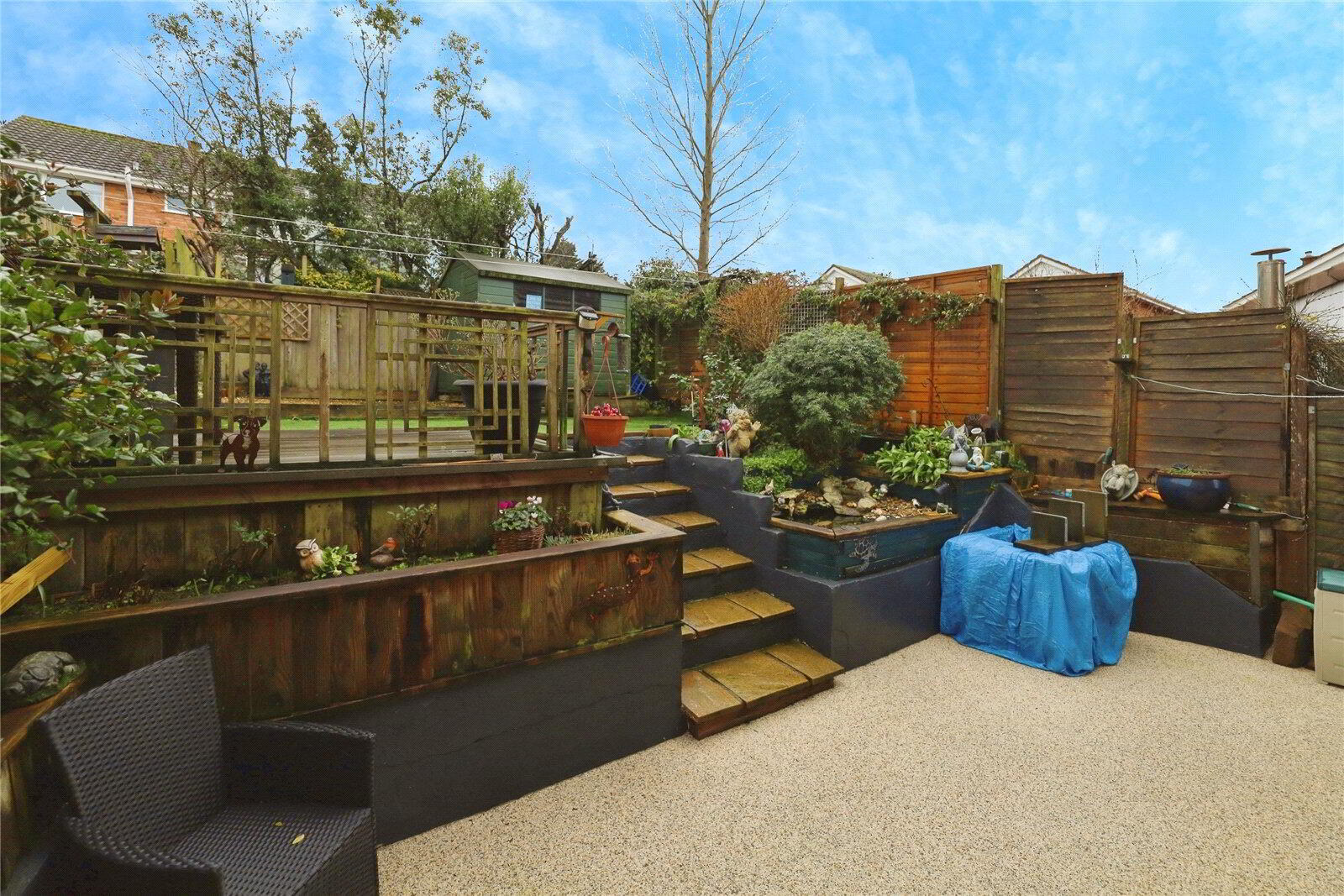 To the rear, the garden is a real highlight being fully enclosed and thoughtfully landscaped, it features a resin patio area directly from the house, leading up to an elevated lawn with a garden shed and a decked seating area - perfect for relaxing, entertaining or enjoying the sunshine in a private setting.