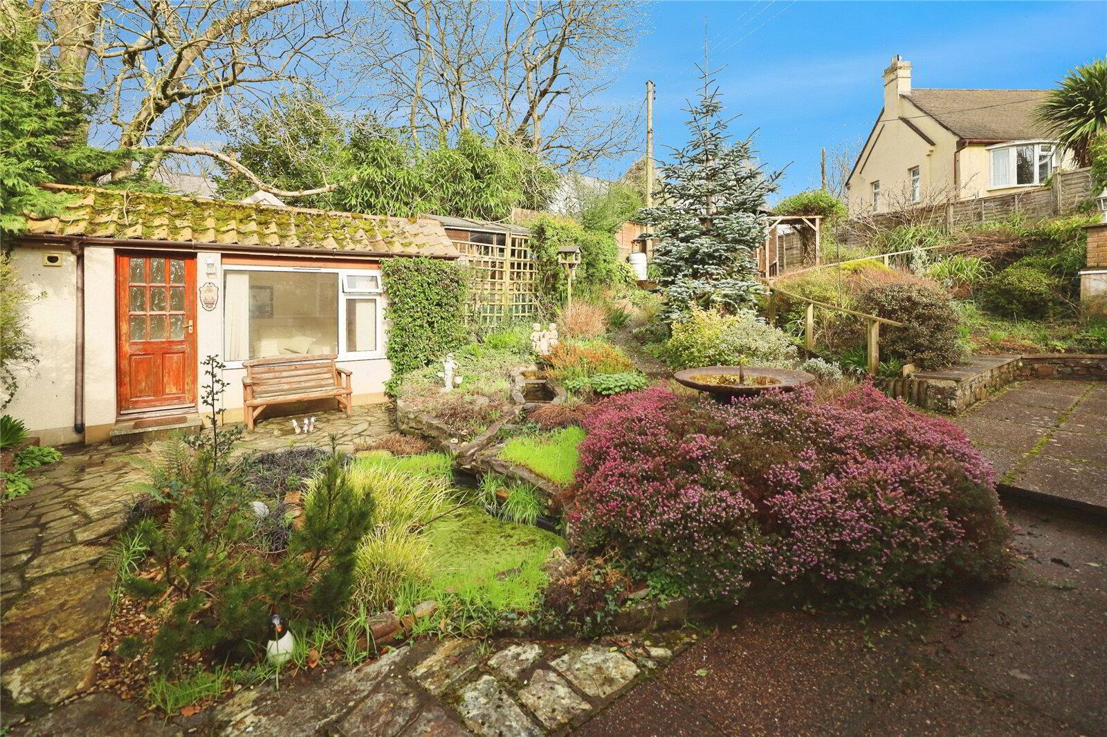 Detached two bedroom bungalow in sought-after Glen Gardens, Bideford, with no onward chain, parking, garage and a stunning, mature rear garden with summer house and outbuilding.