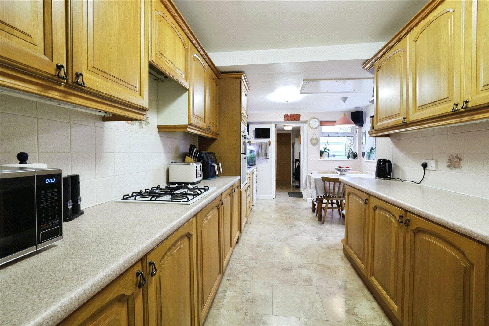 On entering the property, you are welcomed by a large Reception Hall with carpeted stairs rising to the First Floor, useful understairs storage and a handy coats cupboard accessed via double doors. To the right, the accommodation opens into an impressive 27’5 Lounge / Dining Room - a superb, dual aspect living space filled with natural light from a bay window to the front and French doors opening onto the rear garden. A gas fired coal effect fire provides an attractive focal point and a cosy setting for the colder months, whilst the generous proportions allow ample room for both relaxing and entertaining, including family gatherings and special occasions. The Kitchen is another notably spacious area, fitted with a range of wood-fronted base units with matching drawers and roll-top work surfaces, incorporating a built-in double eye-level oven and 4-ring gas hob with extractor over, along with space and plumbing for a dishwasher and freestanding fridge / freezer. There is also room for informal dining within the kitchen itself, creating a bright and sociable everyday living space with windows overlooking the rear garden. From here, a useful Utility Area provides additional storage, houses the gas fired combination boiler and offers direct access outside, whilst a Cloakroom includes a WC, wash hand basin and space and plumbing for laundry appliances. To the rear of the ground floor is a further versatile room which could be used as a fourth Bedroom and currently used as a Home Office - ideal for those working remotely, running a business from home or simply requiring additional hobby or study space.
