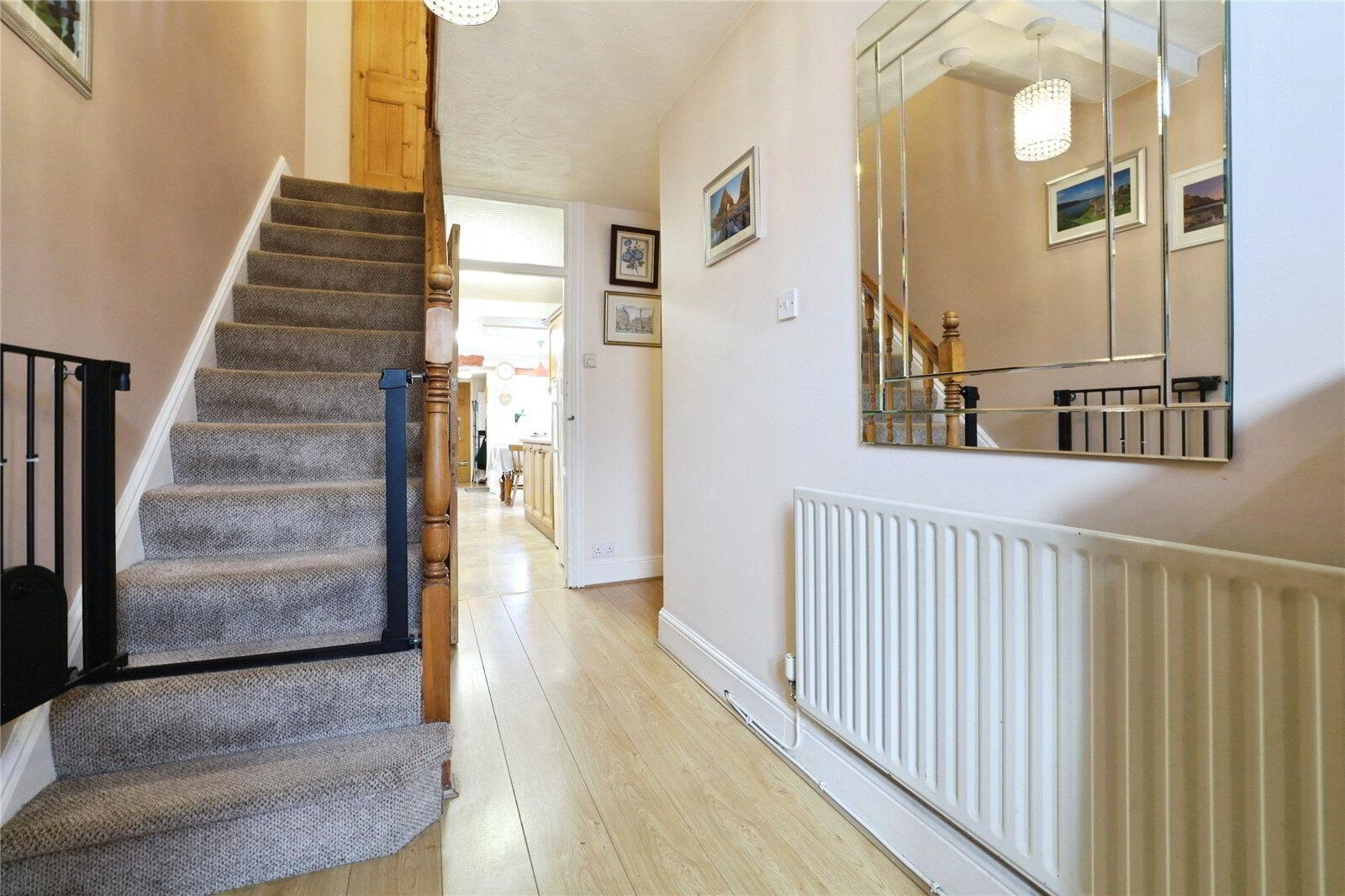 On the First Floor are 3 well-proportioned Bedrooms, with the principal bedroom being particularly spacious and featuring a bay window to the front along with a wall of fitted wardrobes. The second bedroom overlooks the rear garden and also benefits from fitted wardrobes, whilst the third bedroom sits to the front of the property. The Bathroom is fitted with a 4-piece suite comprising bath, separate shower, WC and wash basin. The landing also provides hatch access to a generous, boarded loft space.
