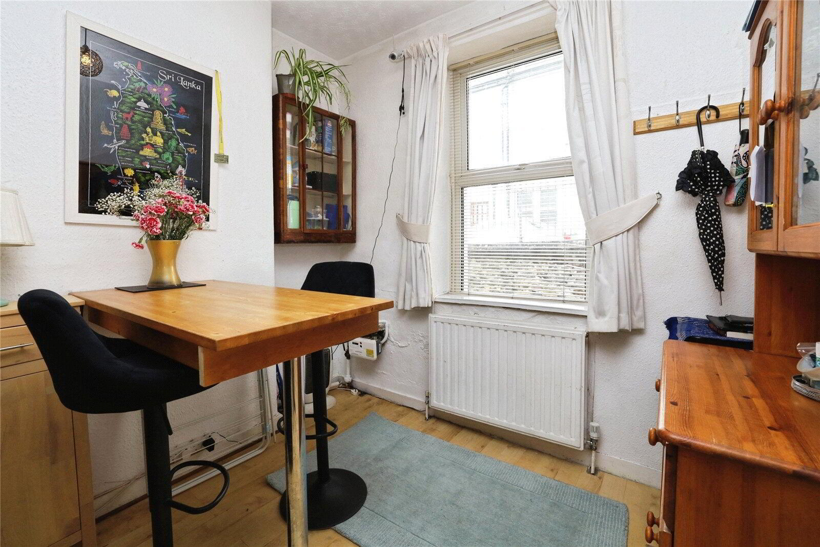 Inside, the property offers surprisingly spacious and well-balanced accommodation, beginning with a superb, open-plan Living / Dining Room that creates an immediate sense of space. This is a lovely dual-aspect room, naturally light in feel, with UPVC double glazed windows to both the front and rear, and a fireplace housing a coal effect gas fire which provides an attractive focal point. A fitted breakfast bar adds to the sociable nature of the room, offering a comfortable place to sit, dine or simply relax. Leading on from here, the Kitchen is well-equipped with a range of eye and base-level units with matching drawers, together with space and plumbing for a washing machine, space for a freestanding cooker and room for a fridge / freezer. A double glazed window looks out towards the side garden area, helping to keep the room bright and pleasant.