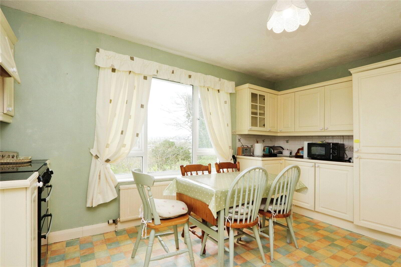 A spacious room with UPVC double glazed window to property rear offering views over the garden towards the town and country beyond. Equipped with a range of eye and base level cabinets with matching drawers and inset 1.5 bowl sink and drainer with mixer tap over. Integrated fridge / freezer. Space for cooker and dishwasher. Radiator. Door to storage cupboard. Hatch to Cellar. Door to Side Porch. - Side Porch