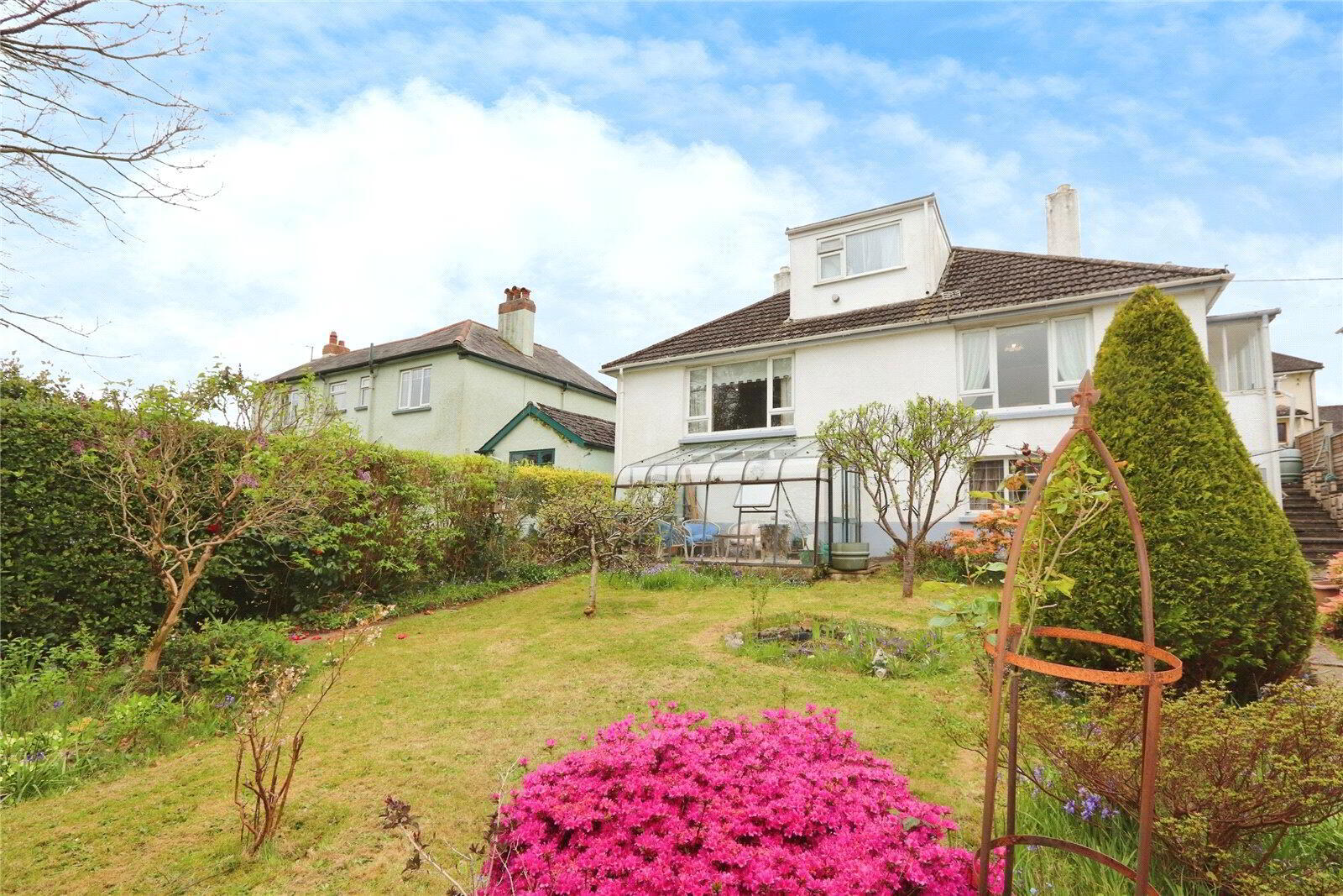 - The property is approached via 2 wrought iron gates which give access to a driveway providing off-road parking for 2-3 cars which includes the Car Port. The front garden provides a great space to sit out and comprises crazy paving with bedded areas, ornamental trees and hedge borders. Access to the rear is via steps on one side of the property. The rear garden is of a good size and is mainly lawned and, again, features ornamental trees and bedded areas. It is a pleasant, well-established garden with hedge and fence borders. A large glass Greenhouse adjoins the rear of the property. There is a door to the Cellar and further storage under the house.