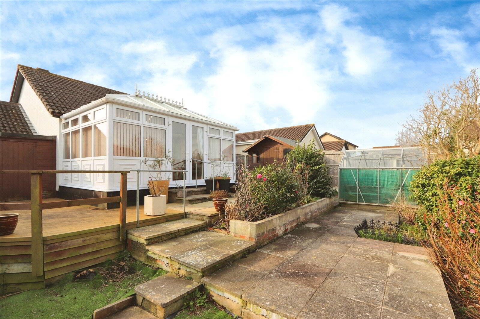 Inside, the spacious Lounge leads through to a well-equipped Kitchen which, in turn, provides access to a bright Conservatory overlooking the garden. The Kitchen comes complete with white goods, offering convenience for the next owner. Two well-proportioned double Bedrooms provide comfortable accommodation, and a Shower Room completes the internal layout.