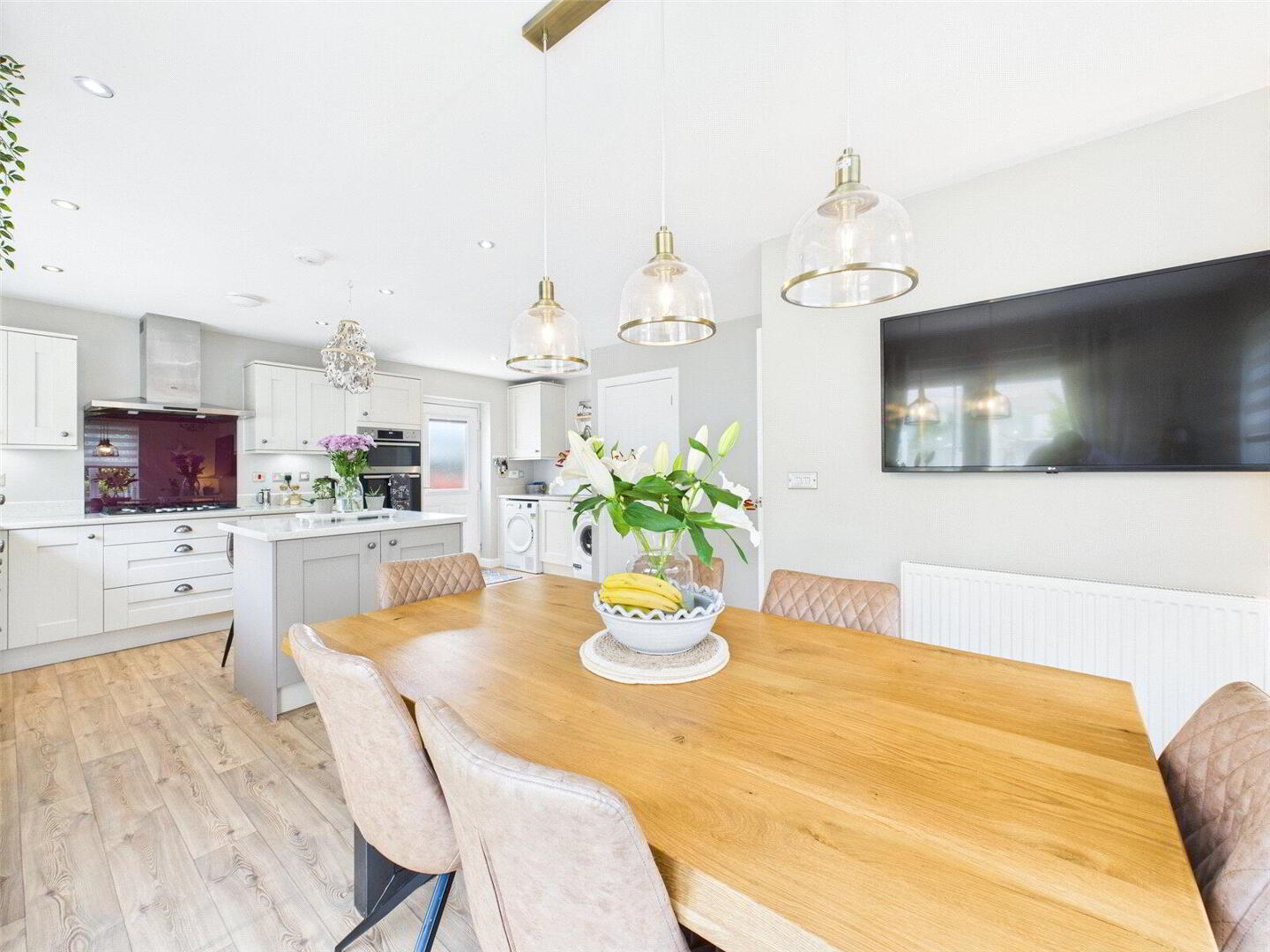 The heart of the home is the open-plan kitchen and dining area, which has been beautifully maintained and thoughtfully laid out to provide a sociable and functional space. The kitchen is fully fitted with modern units, integrated appliances, and ample worktop space, making it ideal for keen cooks and busy households. There is direct access to both the side and rear garden, offering seamless indoor-outdoor living.
