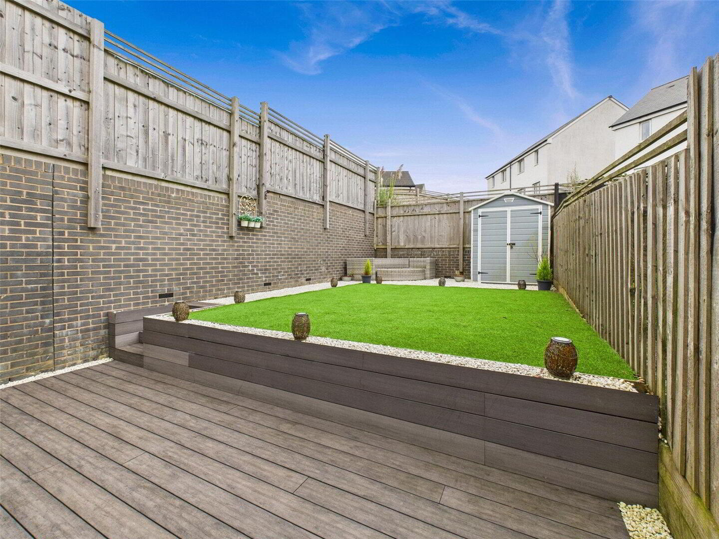 Externally, the property benefits from a landscaped rear garden laid mainly to artificial lawn, fully enclosed and finished to a high standard, setting this home apart from others on the development. The rear garden provides an excellent space for outdoor dining, relaxation, or low-maintenance gardening. There is driveway parking and a small garden area, adding to the property’s convenience.