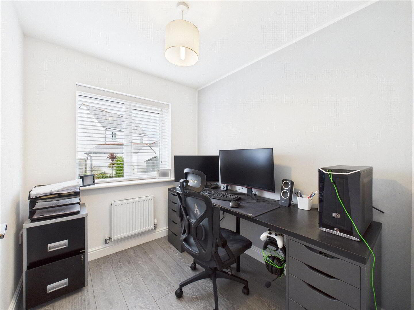 On the first floor, a large central hallway provides access to three bedrooms and the family bathroom. To the left are two generous double bedrooms, both featuring large windows that allow natural light to flow in throughout the day. The third bedroom is a well-sized single room which could also function perfectly as a home office or study. The family bathroom is equipped with a bath and shower unit, basin and a heated towel rail.