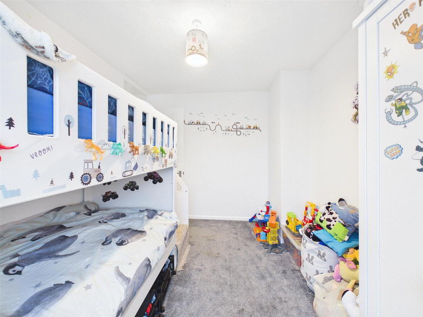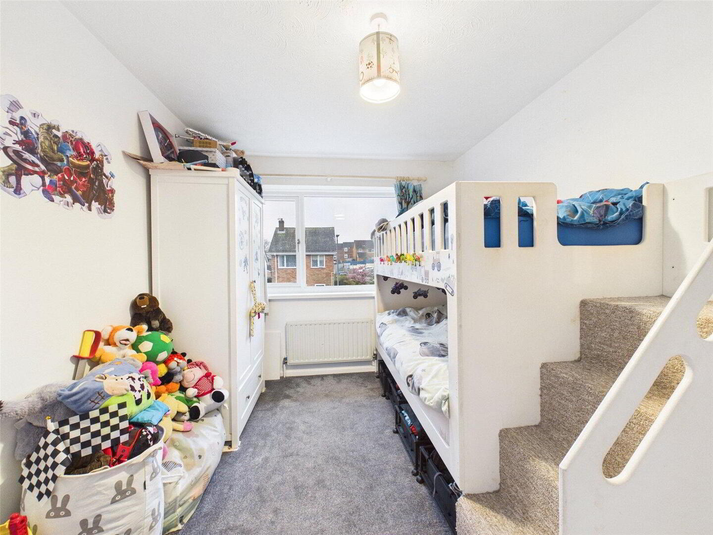 Upstairs, you’ll find the family bathroom and three well-proportioned bedrooms. The main bedroom is bright and airy with plenty of natural light and good storage. The two further bedrooms are perfect for children, guests or even a home office, and there’s a handy linen cupboard on the landing for extra storage.