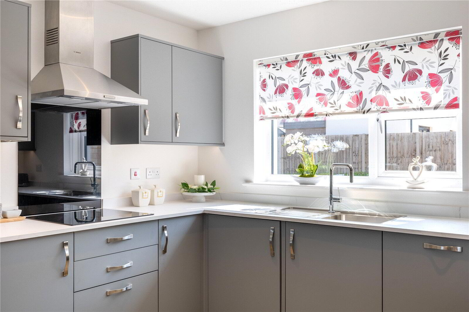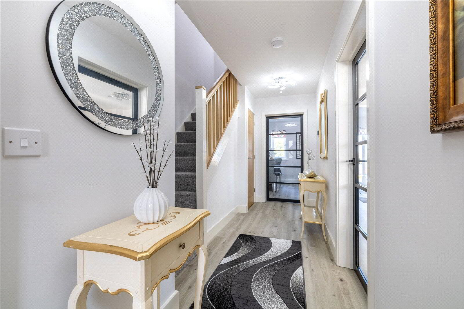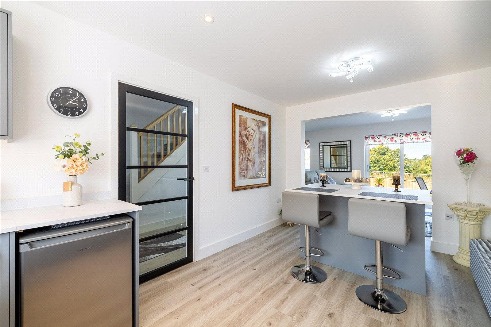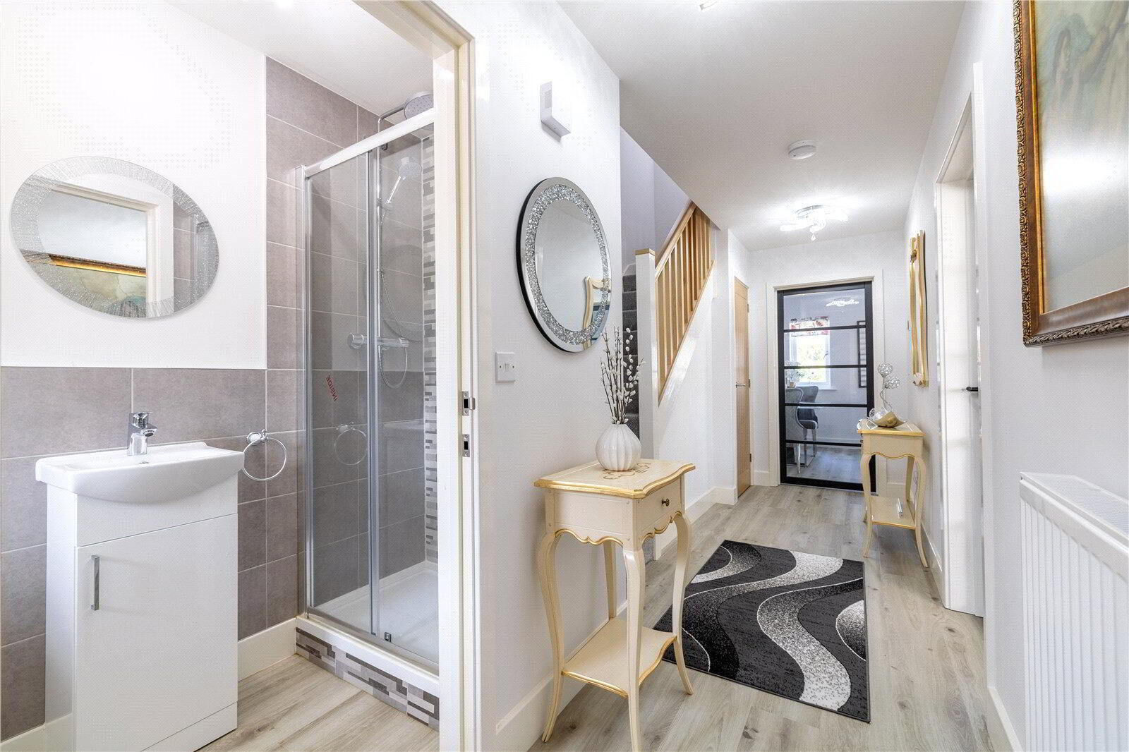 From the moment you step inside, the quality of finish is clear. A bright and welcoming Hallway leads into a superbly presented Kitchen / Breakfast Room, tastefully refurbished by the current owners with a central island, high quality Bosch appliances and ample space for family dining. The generous Lounge / Diner spans the width of the property and features a striking built-in media wall, large sliding doors and a seamless connection to the landscaped garden – the perfect setting for both entertaining and quiet evenings watching the sunset over rolling countryside. A contemporary Shower Room completes the ground floor.