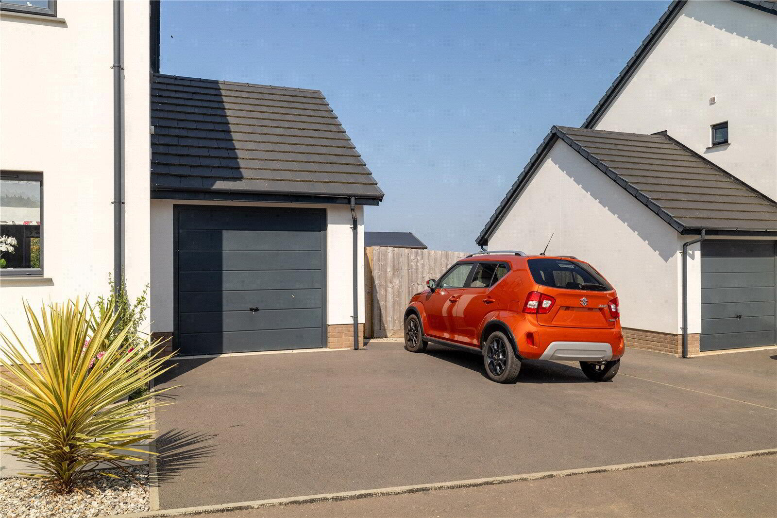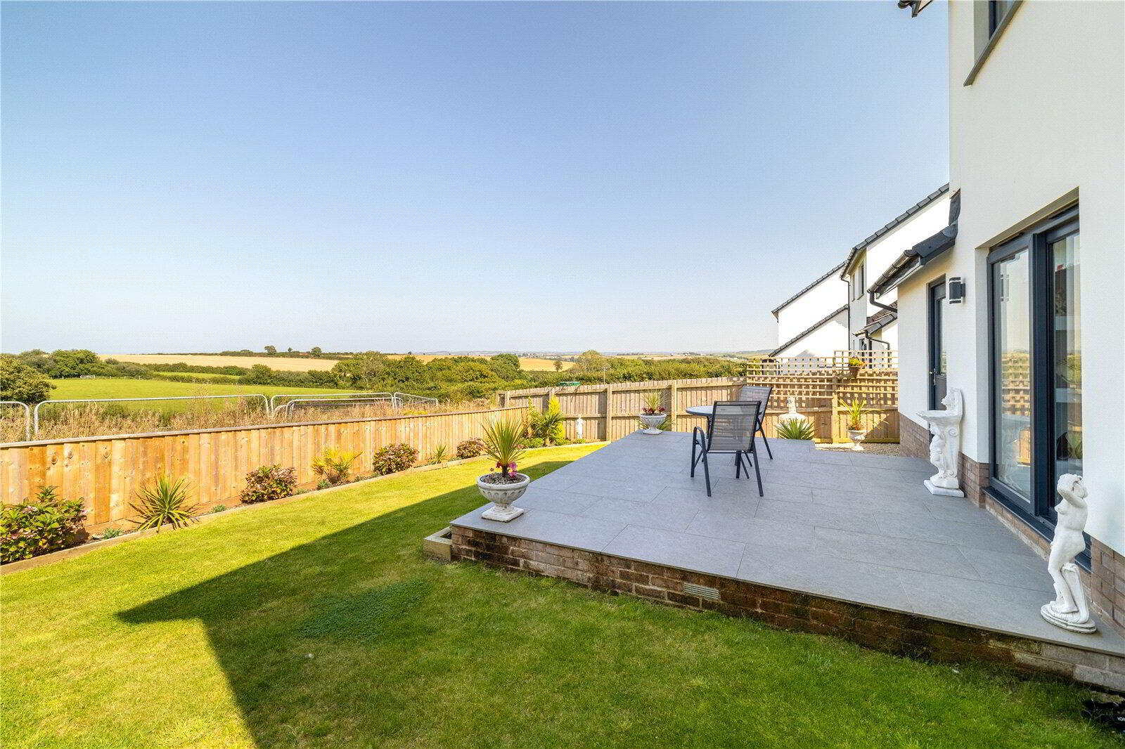 Outside, a neatly landscaped frontage and ample driveway parking lead to the Garage. The rear garden has been thoughtfully designed for low-maintenance enjoyment, with a porcelain paved patio - ideal for al fresco dining, a lawned area and well-stocked borders, all framed by the captivating rural backdrop.