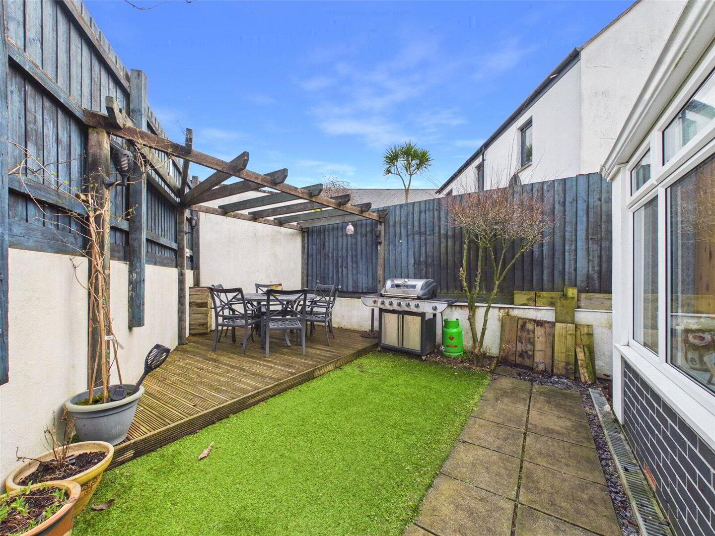 The property benefits from a private off-road parking area. The enclosed rear garden has been thoughtfully landscaped for low maintenance, featuring areas of artificial lawn and paving, along with an attractive pergola seating area. A useful storage shed is also provided, along with a rear access gate leading to a communal parking area.