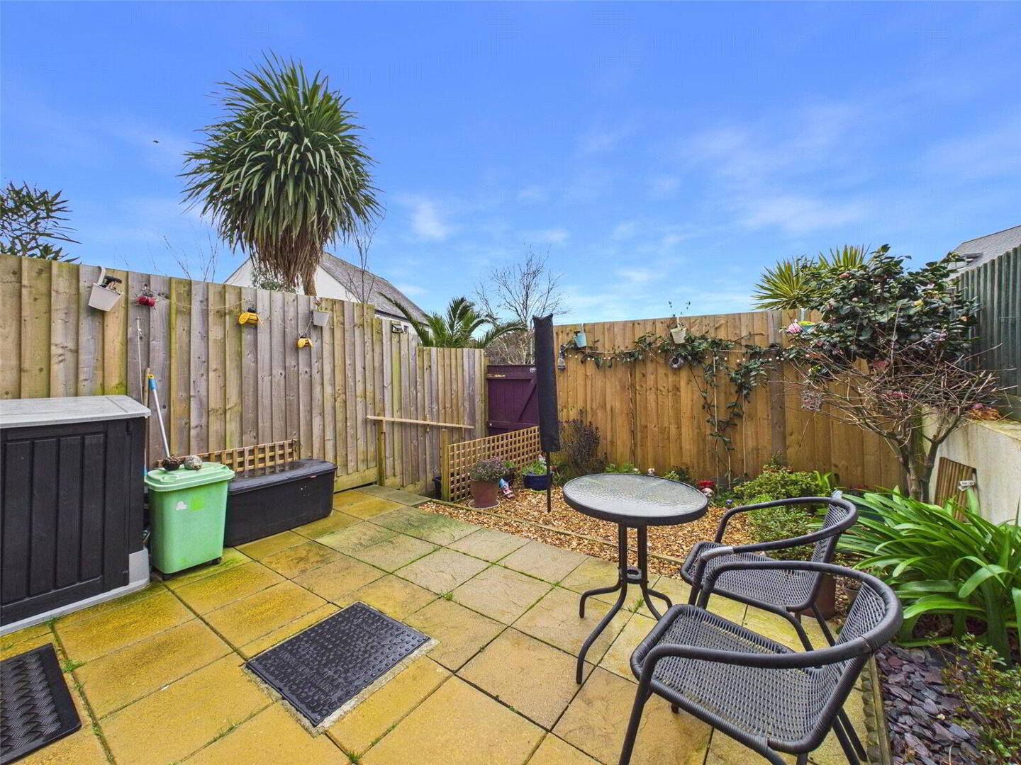 To the front, the property is approached via a communal paved pathway leading to the entrance door, creating a neat and welcoming arrival. The rear garden has been thoughtfully landscaped to provide an attractive yet low-maintenance outdoor space. Immediately adjoining the property is an extended paved patio — ideal for al-fresco dining, entertaining or simply enjoying the warmer months — with direct access from the living room via French doors, creating a seamless flow between indoor and outdoor living. The garden is predominantly laid to patio and decorative stone chippings, complemented by raised planting beds and established shrubs that provide colour and interest throughout the seasons. Recently renewed fencing enhances privacy and security, making the space well suited to both relaxation and pets. A useful outdoor storage box provides practical additional storage. To the rear boundary, a gate provides direct access to the allocated parking space, conveniently positioned immediately behind the property — a particularly useful feature for ease of access. The outside space has been designed with simplicity and ease of maintenance in mind, perfectly complementing the property’s modern, low-maintenance lifestyle appeal.