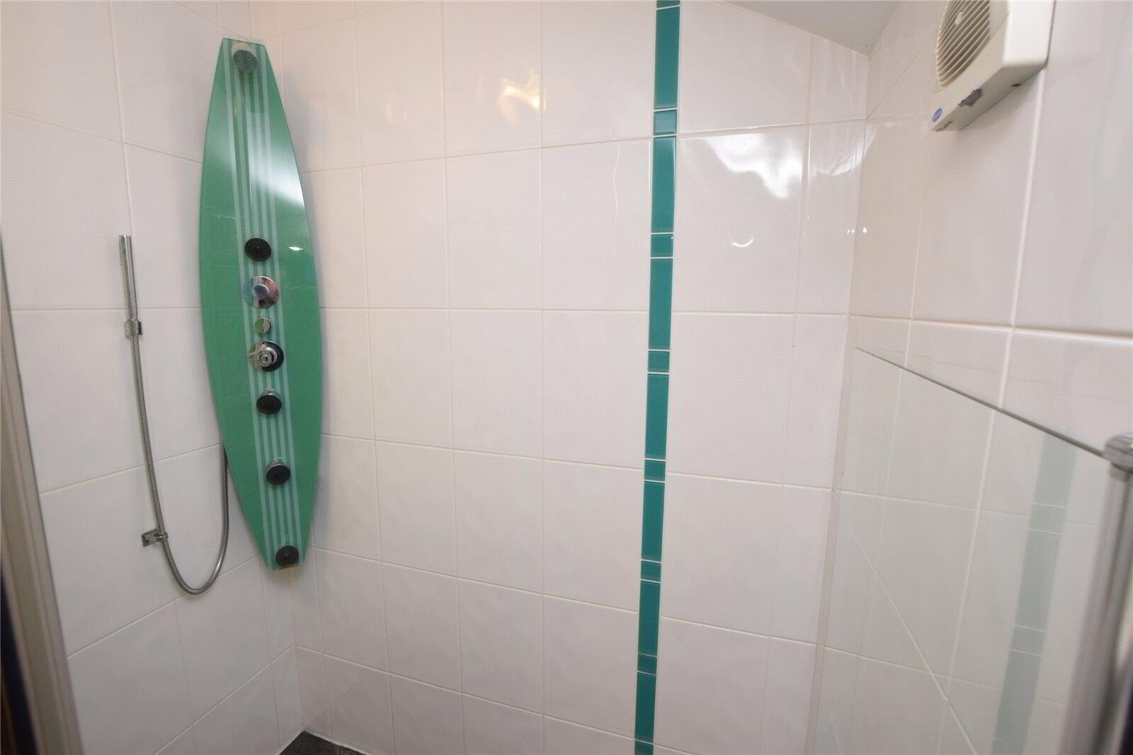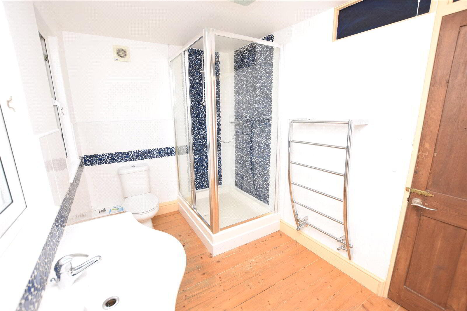Comprising a shower cubicle with mains fed shower over, low level WC and pedestal hand wash basin. Two windows to the rear elevation. Chrome heated towel rail.