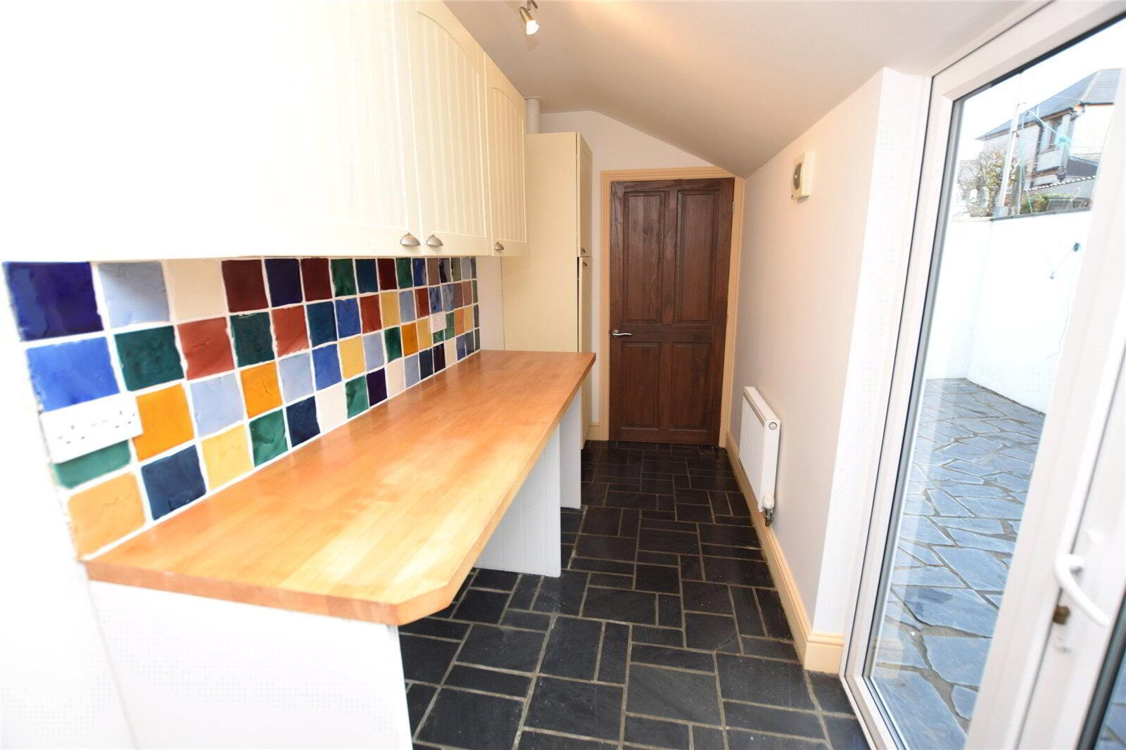A range of base units and wall with square edge wooden worktops over. Space and plumbing for washing machine. Larder cupboard housing gas fired boiler. Handmade tiles to water sensitive areas. Under floor heating. Door to Shower Room. Patio doors to the rear courtyard.