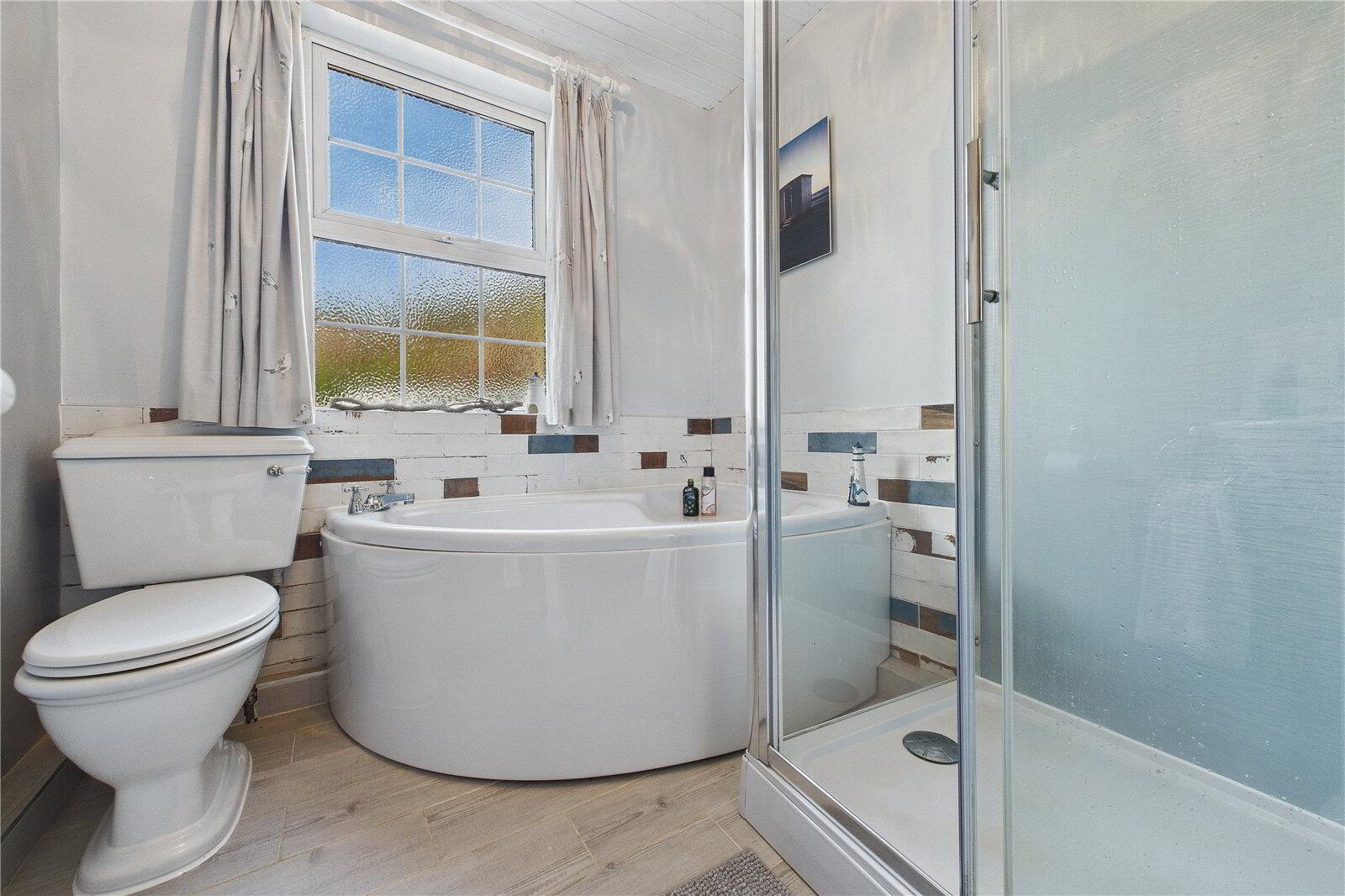 Upstairs are four bedrooms, three doubles and one single, all continuing the home’s characterful feel, alongside a well-appointed family bathroom with corner bath and rainfall shower. The property has been enhanced with UPVC double glazing, while retaining its original Georgian features.