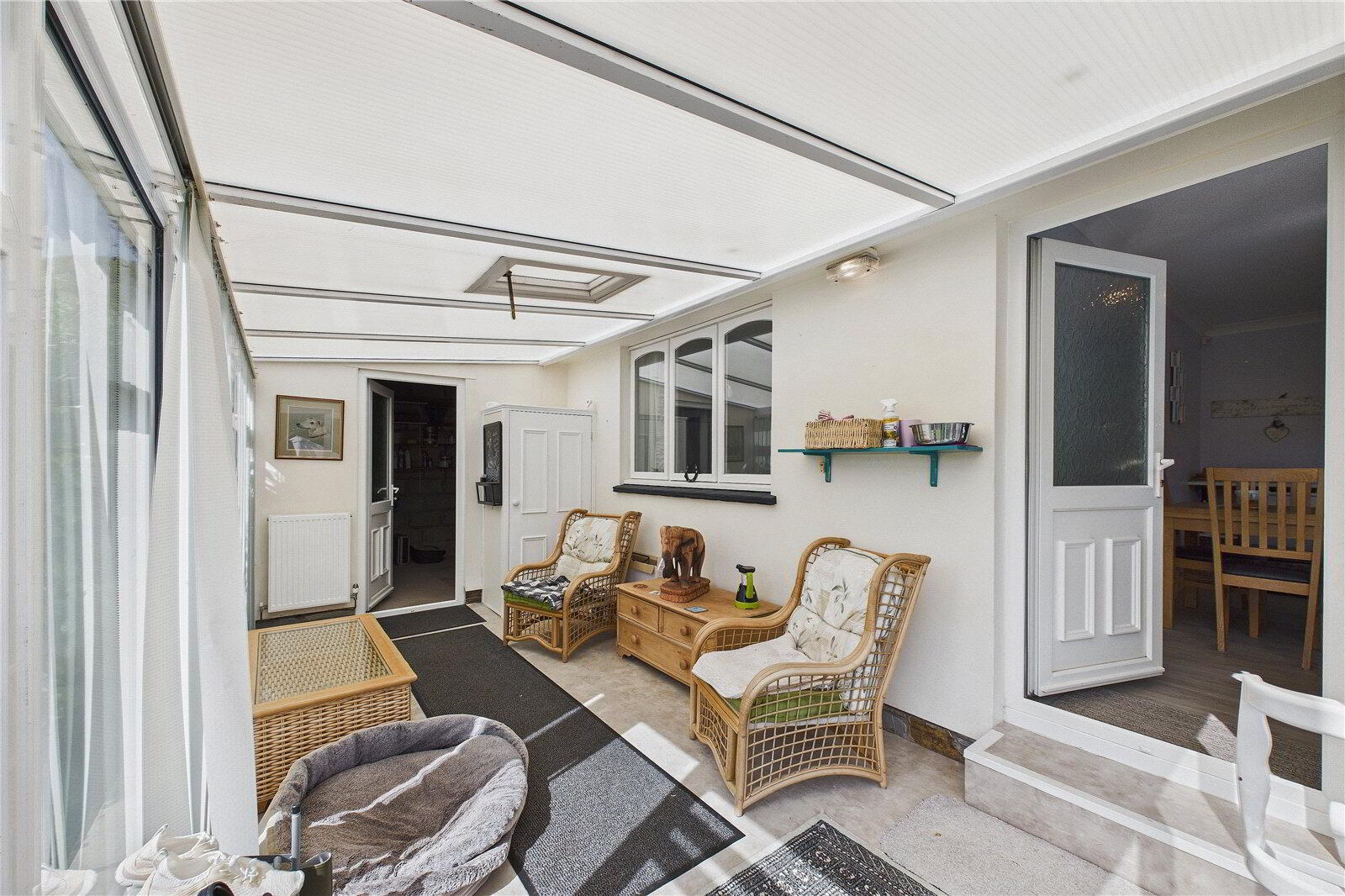 Outside, the level rear garden is a real highlight offering a true sun trap with an additional patio seating area, established borders, and a high degree of privacy. The front of the property provides additional garden space, off-road parking for multiple vehicles, and access to the garage.