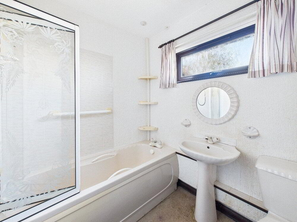 The property offers well-proportioned accommodation throughout, comprising an entrance hall, a spacious living room, kitchen with access to the rear porch, two bedrooms and a family bathroom. While the bungalow now requires a programme of modernisation, it presents an excellent opportunity for purchasers to update and personalise to their own tastes, with clear potential to create a comfortable permanent residence, coastal retreat or investment opportunity.