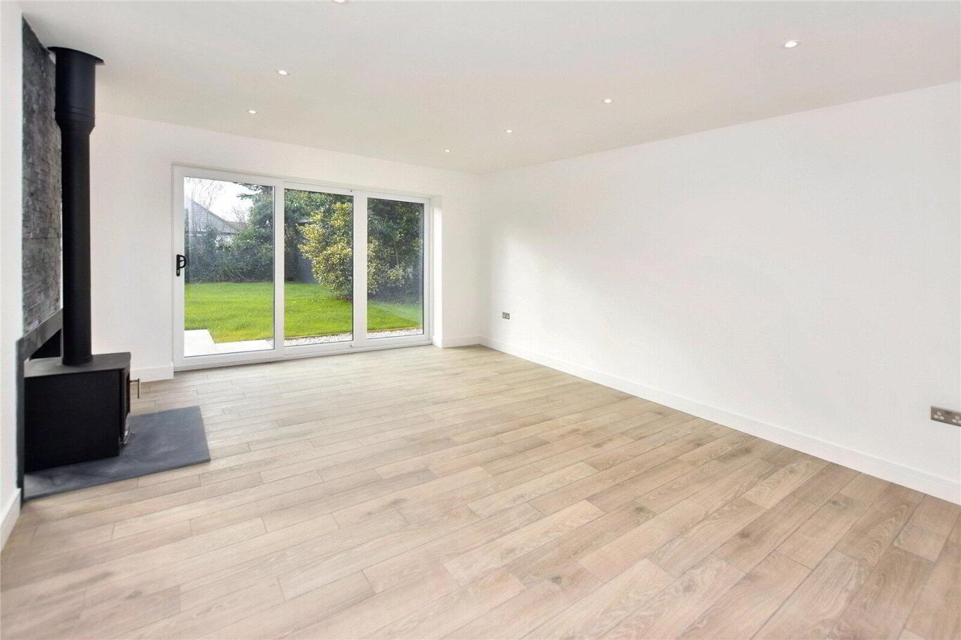 A newly fitted kitchen comprising a range of fitted units with work surfaces over incorporating stainless steel sink drainer unit with modern mixer tap, built in Neff appliances include 4 ring induction hob, extractor hood and high level oven. Integrated dishwasher and fridge freezer. Breakfast bar area. Ample space for dining table and chairs with fitted double fronted log burner and slate hearth. Double glazed window to side elevation and double glazed sliding door to rear elevation. Electric underfloor heating. - Living Room