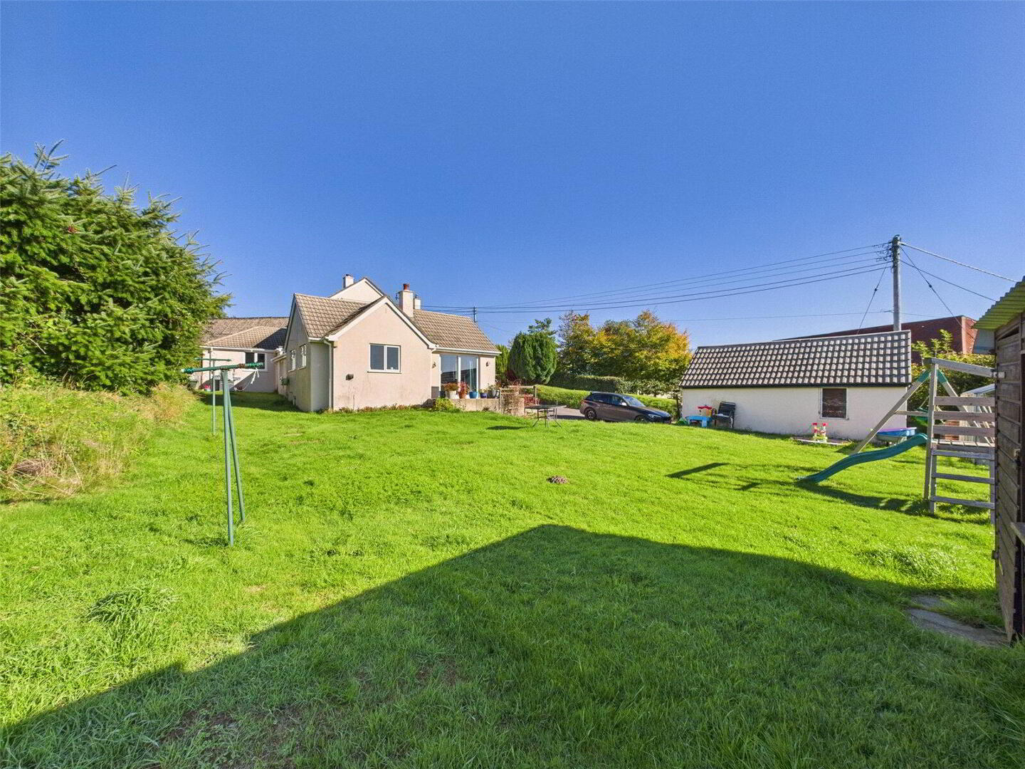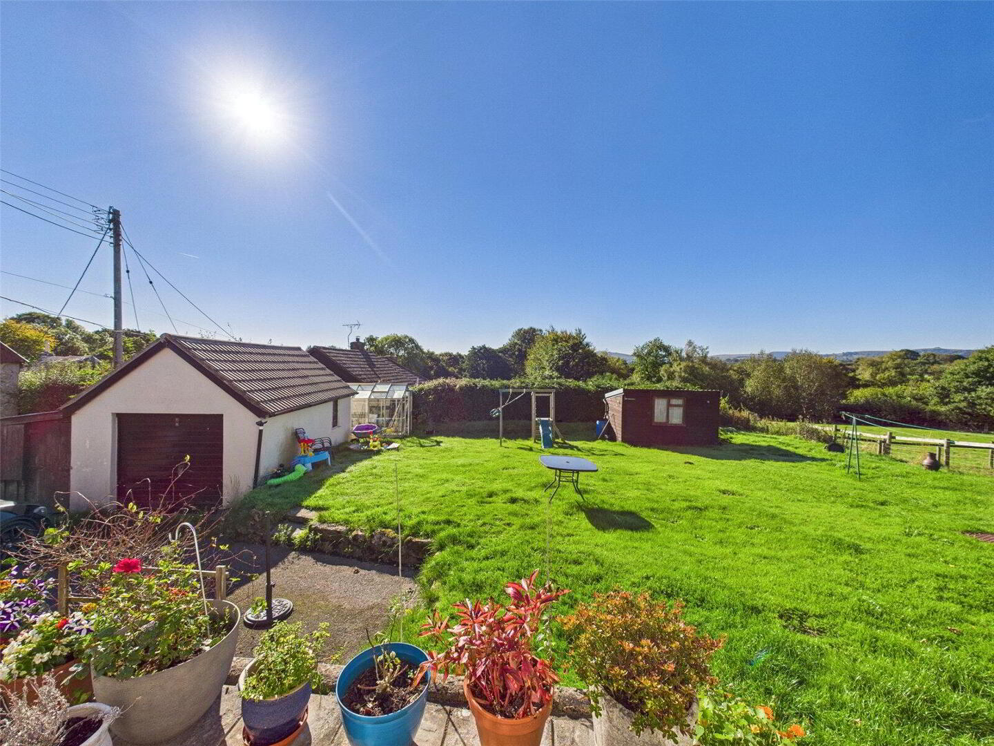 Outside, the property sits within a level 0.21 acre plot. A gated entrance opens to a wide driveway with space for multiple vehicles, a detached garage, and a useful adjoining store. The south facing rear garden is mainly lawned and features a greenhouse and children’s climbing frame, with ample room for landscaping or personalisation.