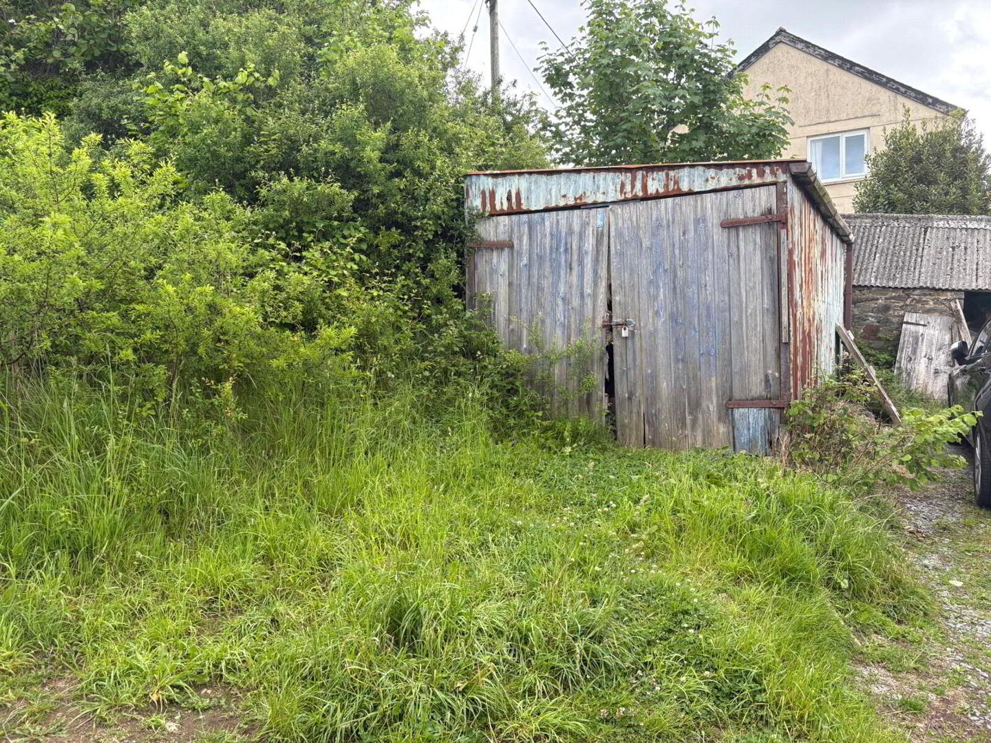 To the side and rear of the property, a wide gravelled path offers practical space for storage. A short stroll from the property lies a detached timber and corrugated iron garage, along with a charming stone piggery—both included with the property—providing off-road parking and additional storage or potential for further use.
