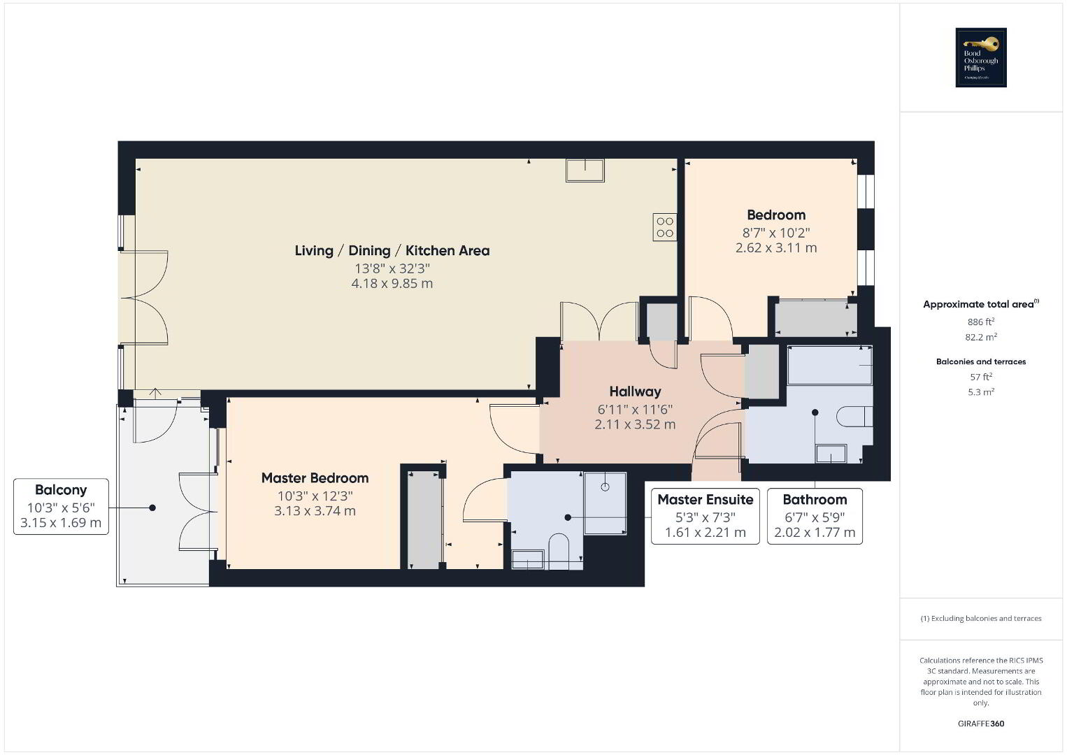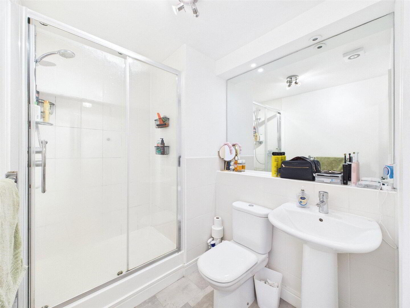 The apartment features two well-sized double bedrooms, with the master suite being particularly impressive. This room boasts floor-to-ceiling doors opening onto a private estuary-facing balcony, offering panoramic views of the famous Camel Estuary and the town — an unspoiled vista rarely available in Wadebridge. Built-in wardrobes provide a walk-in-style dressing area, and the master ensuite includes a modern shower, W.C., and basin. The second bedroom sits adjacent to the family bathroom, which features a bath, W.C., and basin, and also includes built-in wardrobes.