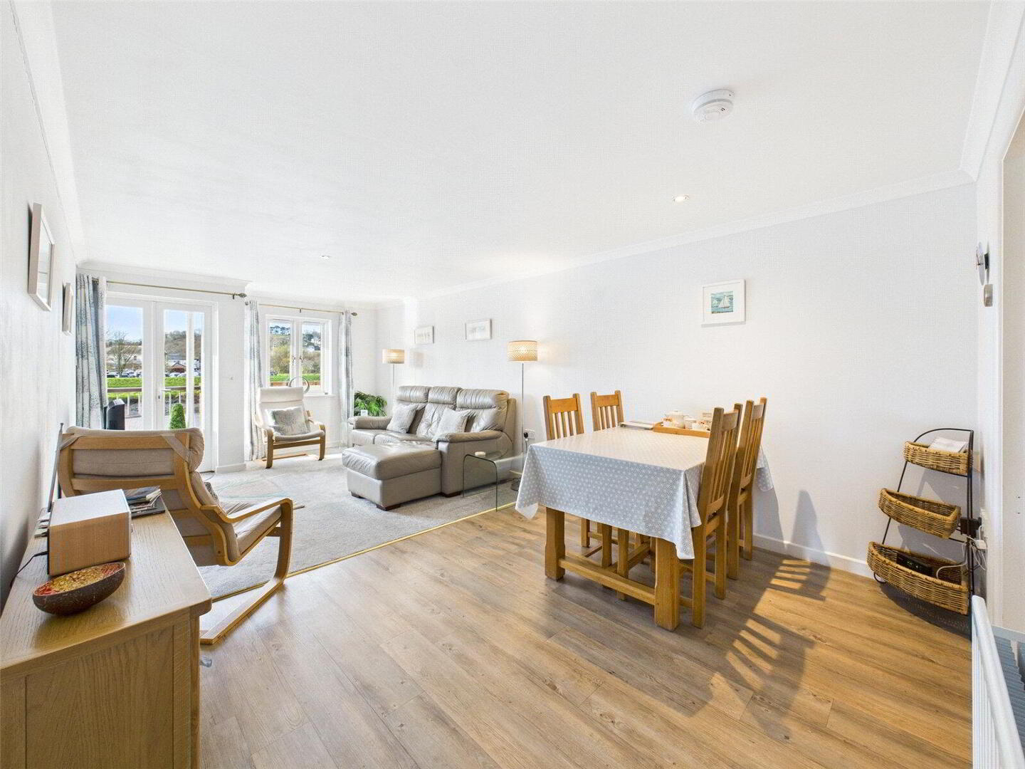 The heart of the home is the spacious lounge and dining area, a bright and airy room designed to make the most of its enviable riverside setting. French doors and windows frame the view beautifully and open directly onto the balcony creating a wonderful connection between inside and out. Whether enjoying a quiet morning coffee or an evening drink watching the light change over the river, this space is a real highlight of the apartment.