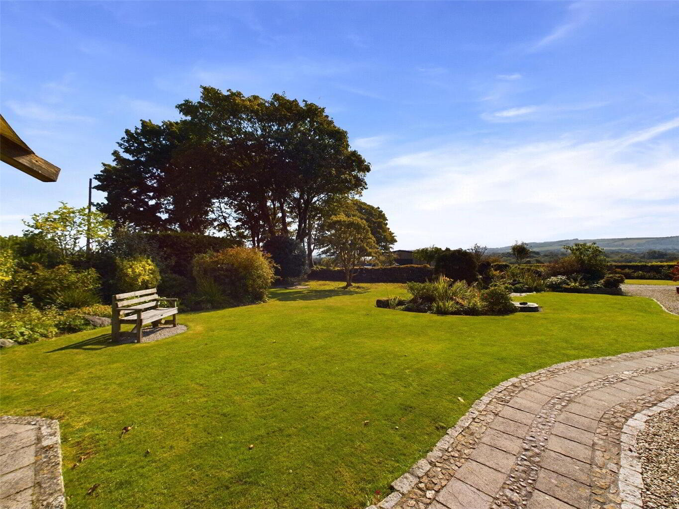 A detached double garage with an electrically operated roller door serves as a secure space for two vehicles. Beyond this, a games room presents flexible use as a home office or studio, while a wraparound decking area offers stunning views over the rolling Cornish countryside. Keen gardeners will appreciate the vegetable patches, perfect for growing fresh produce.