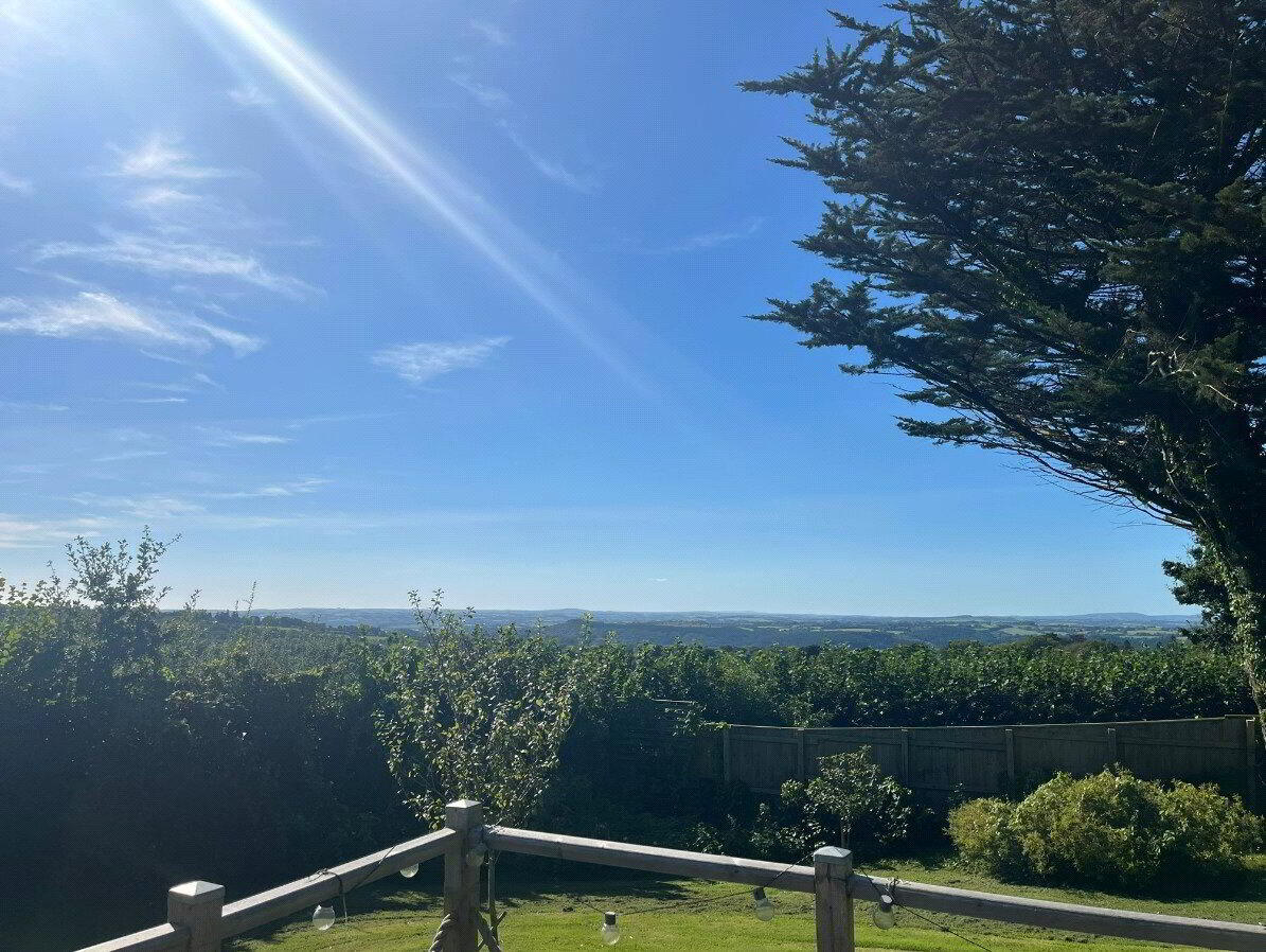 The property is accessed via a shared lane that leads to a private driveway, offering ample off-road parking. Set within two acres of grounds, the exterior includes a large patio and well-maintained lawns for easy upkeep. The lower part of the garden features an inviting raised deck area, perfect for enjoying the panoramic views.